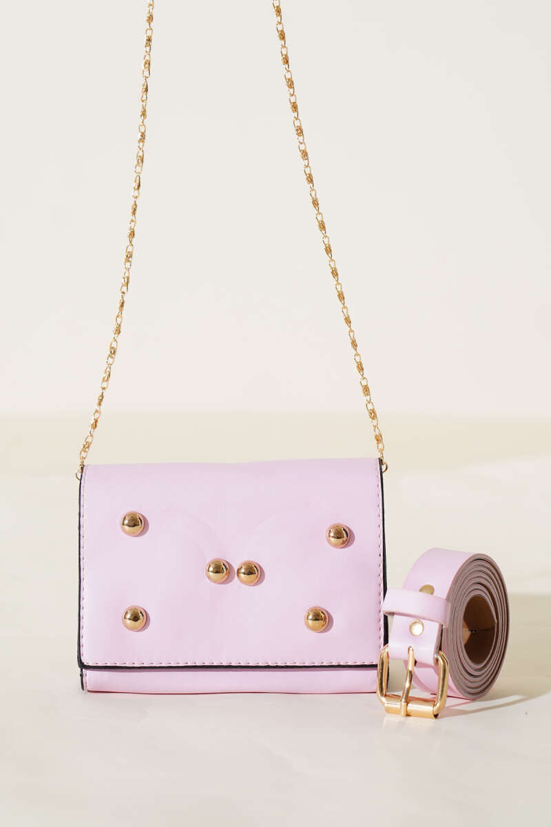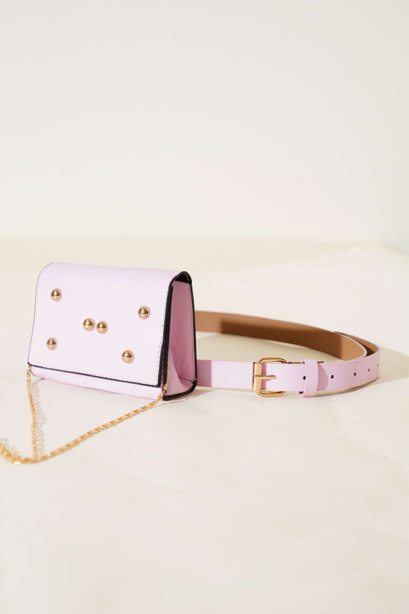 Mıknatıslı Önü Zımbalı Mini Bel Çanta Pudra