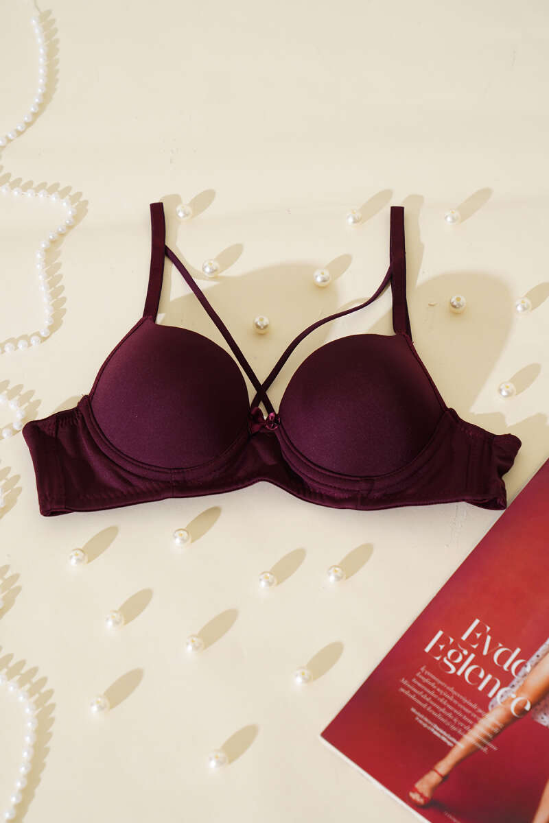 Mikro Çapraz İp Askılı Destekli Sütyen Koyu Mürdüm