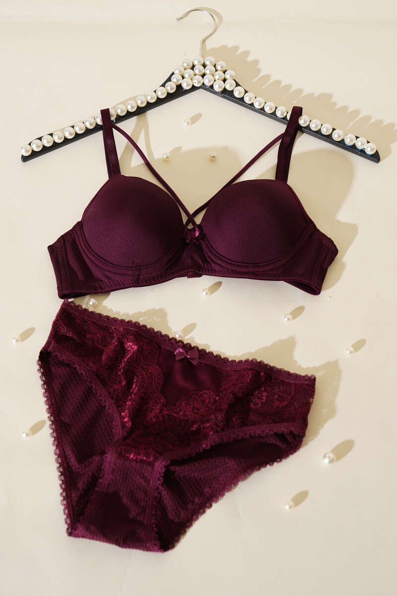 Mikro Çapraz İp Askılı Destekli Sütyen Takım Mürdüm