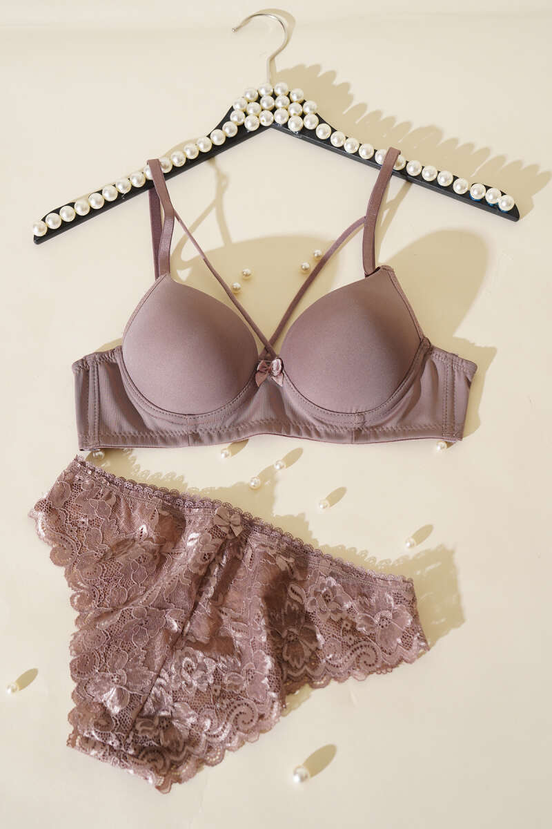 Mikro Çapraz İp Askılı Destekli Sütyen Takım Vizon