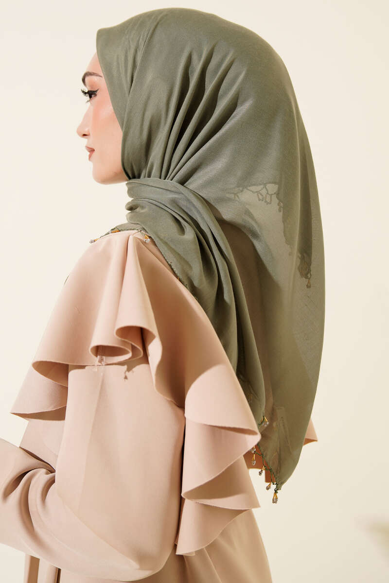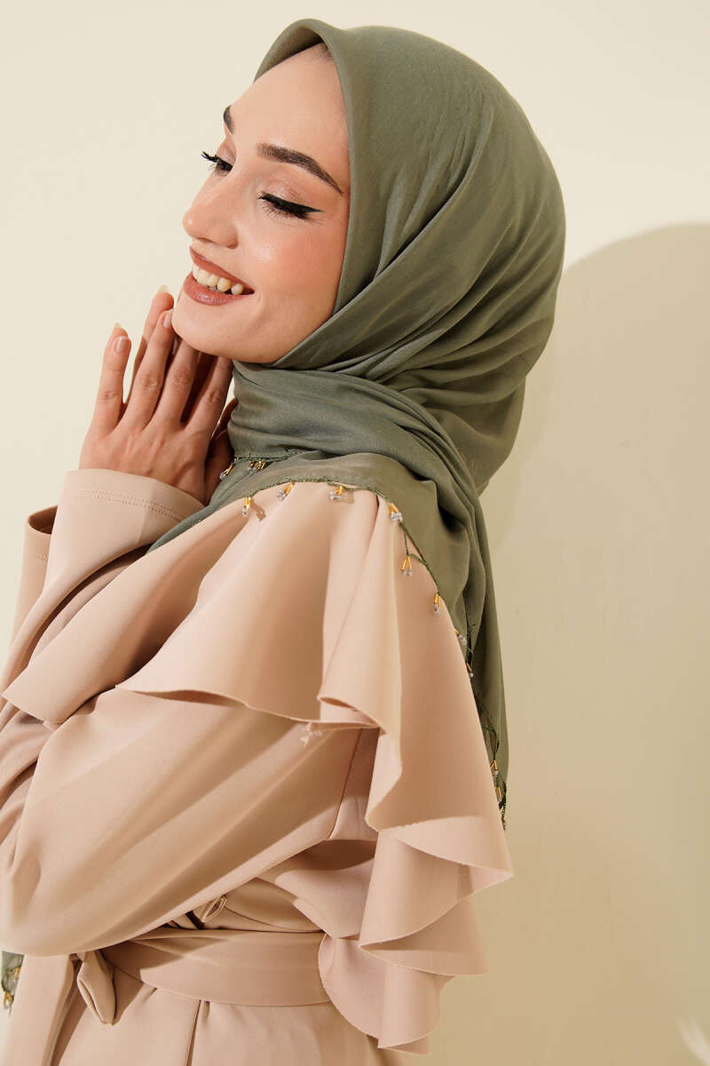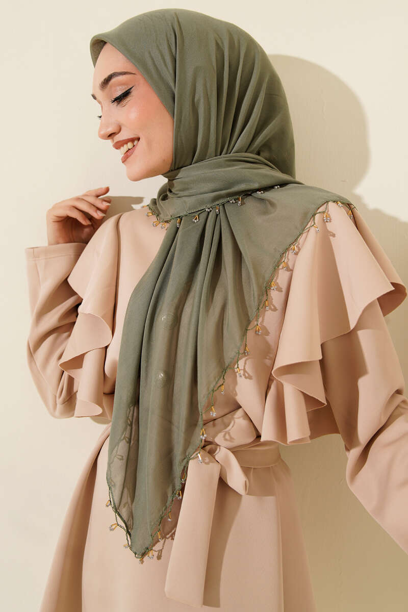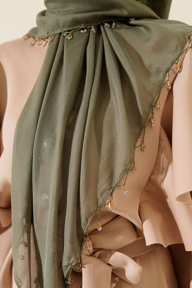 Mini Boncuk Detaylı Eşarp Çağla Yeşili