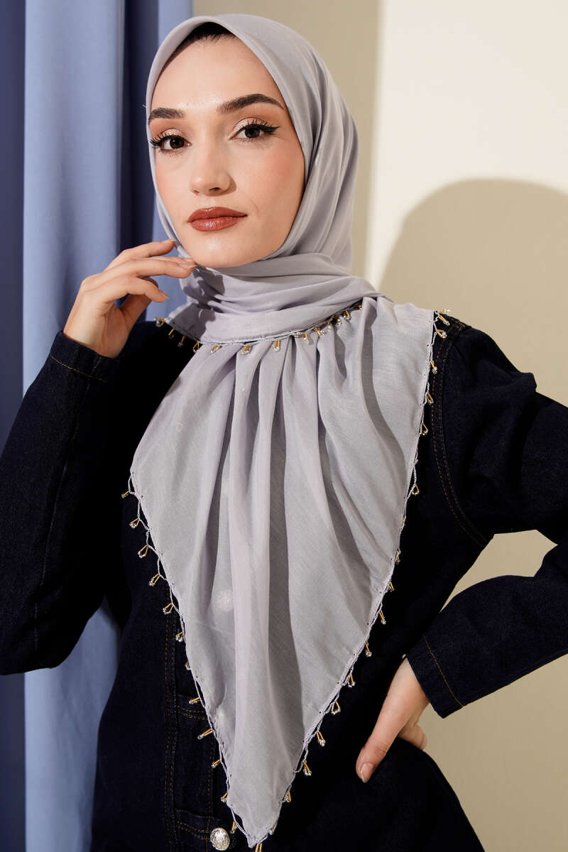 Mini Boncuk Detaylı Eşarp Gri