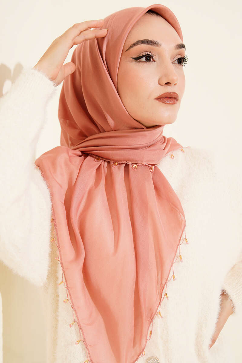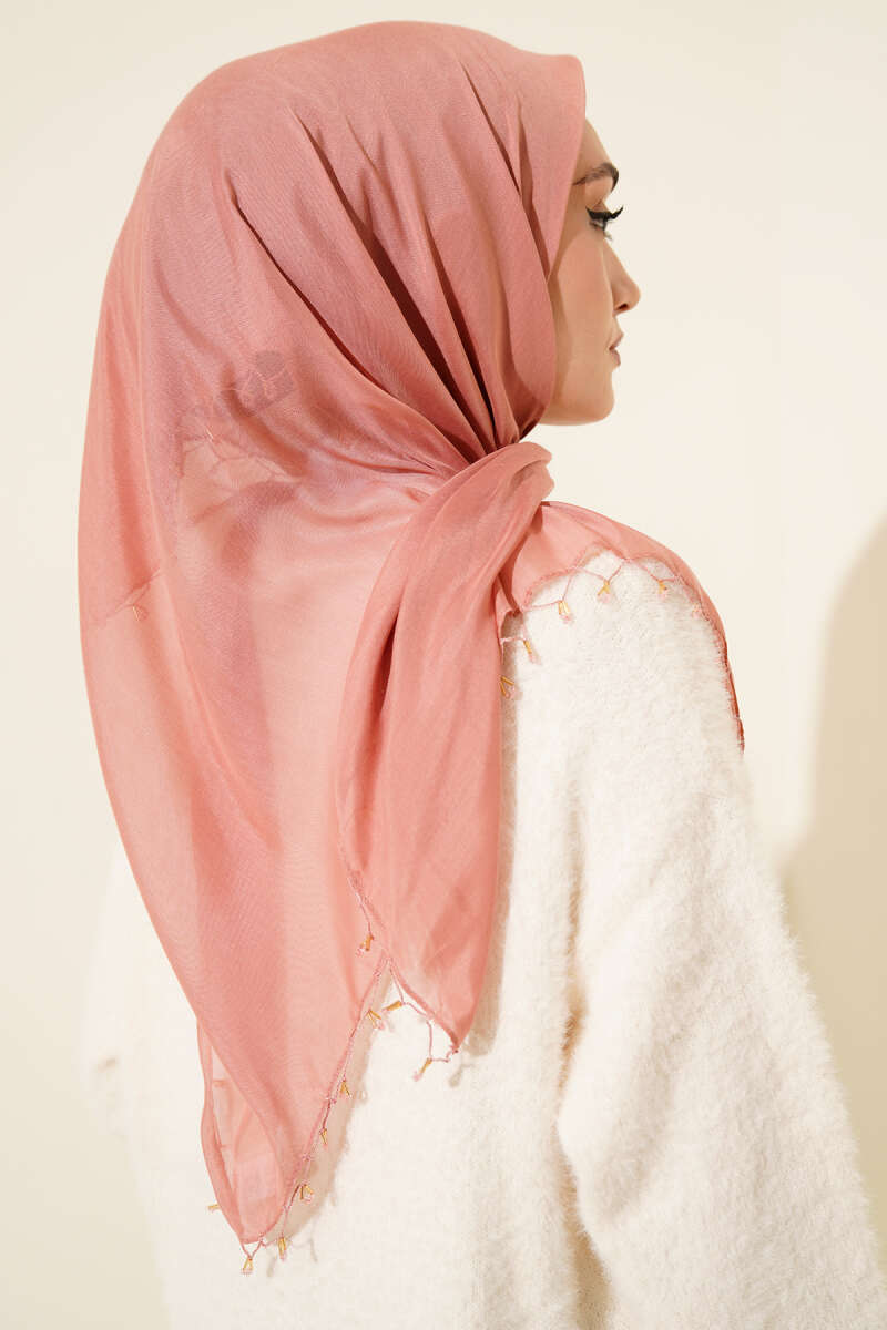 Mini Boncuk Detaylı Eşarp Gül Kurusu