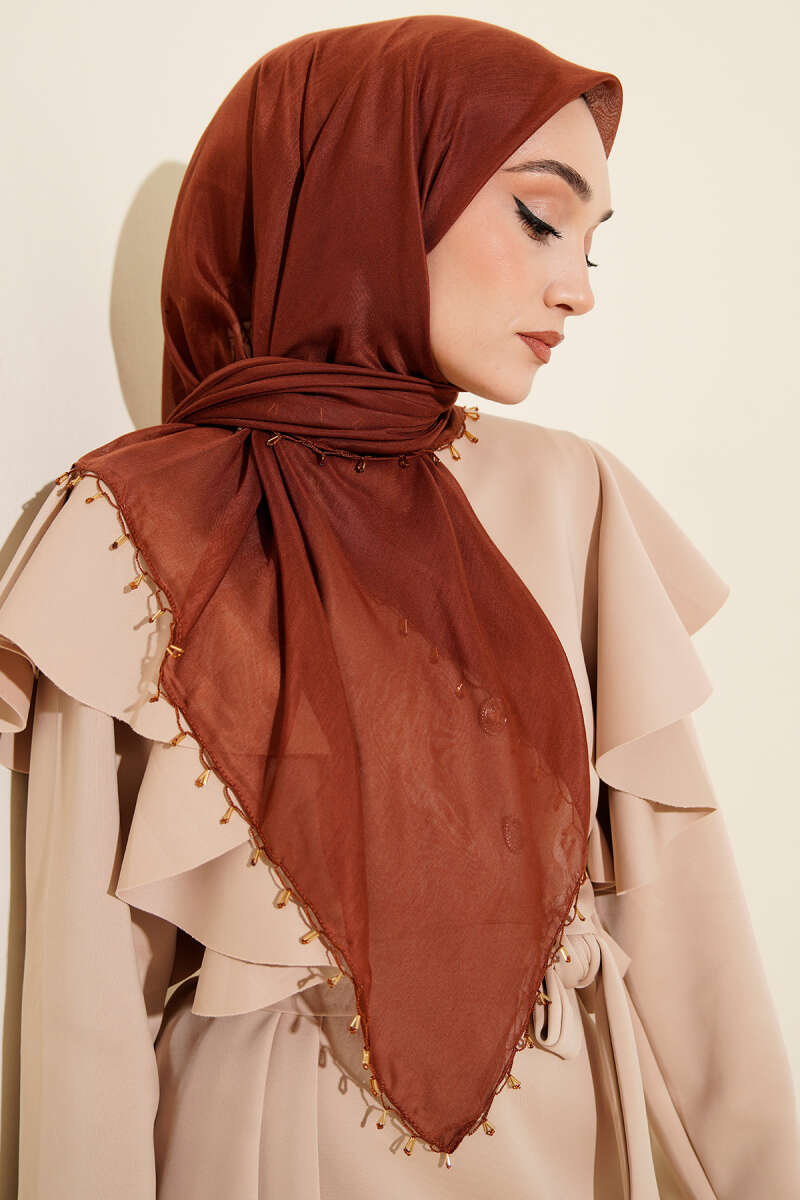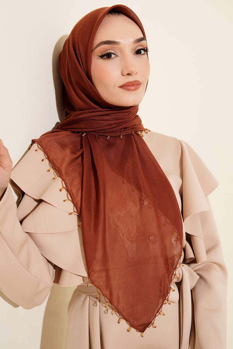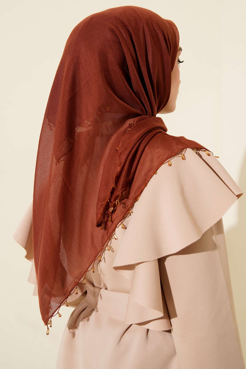 Mini Boncuk Detaylı Eşarp Kırmızı