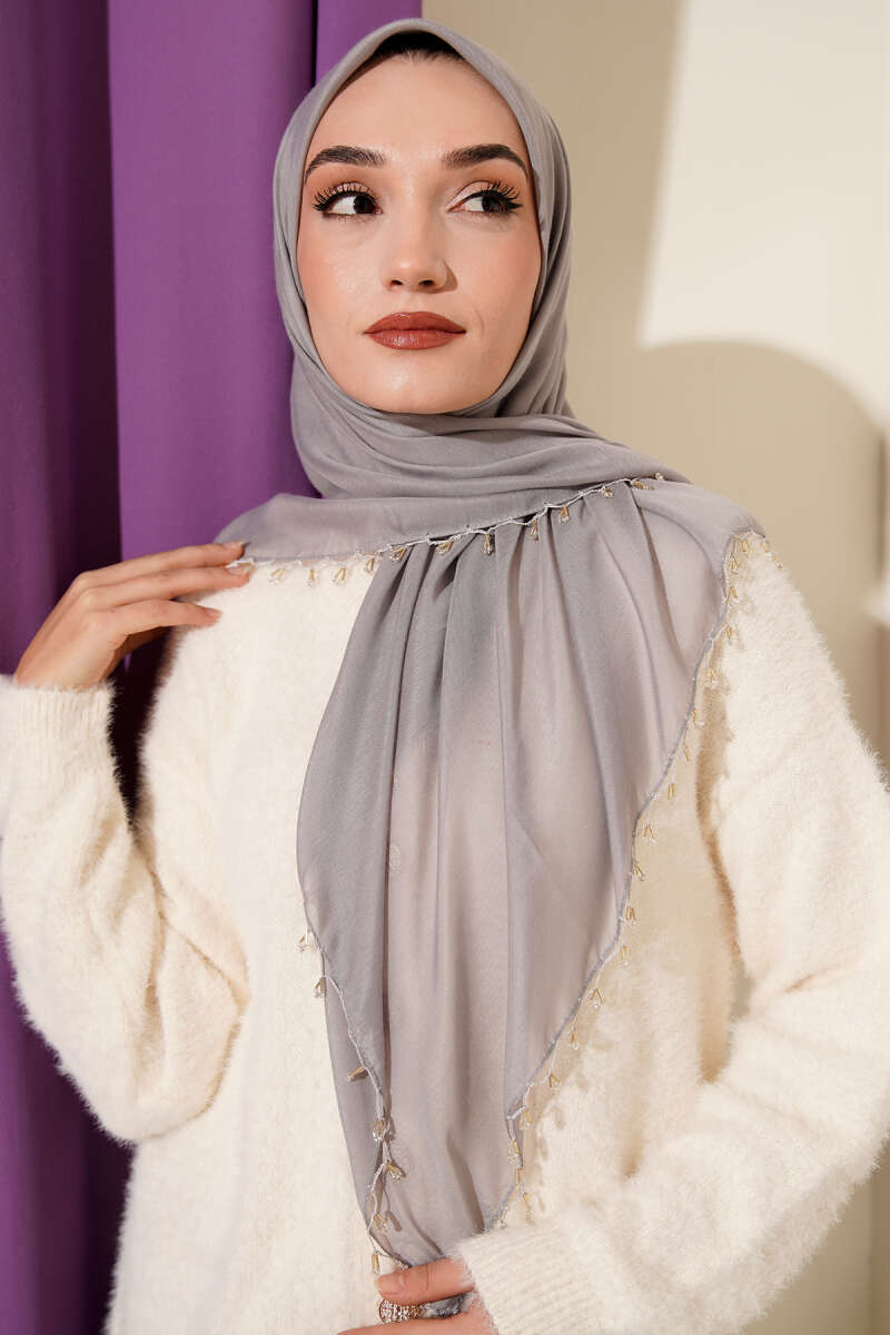 Mini Boncuk Detaylı Eşarp Kırmızı