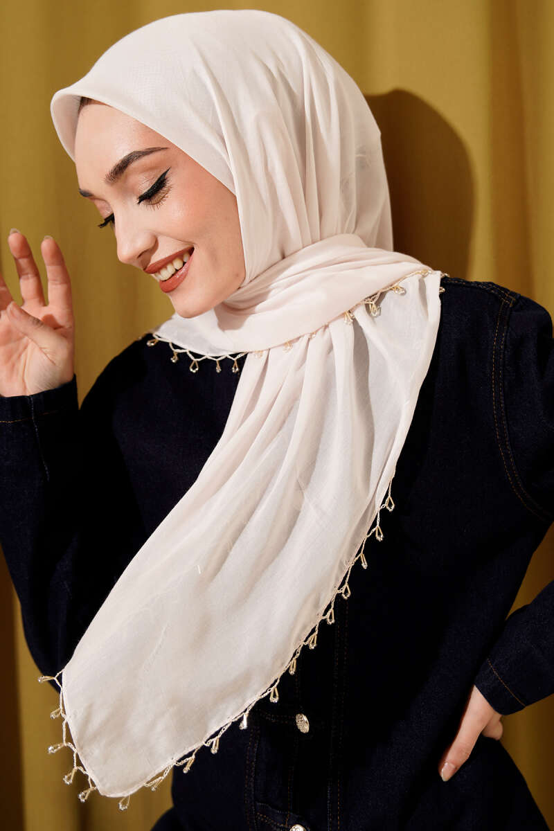Mini Boncuk Detaylı Eşarp Kırmızı