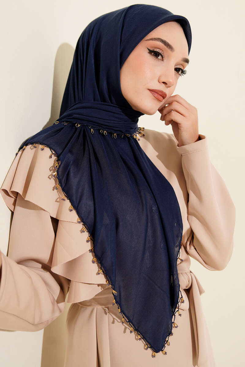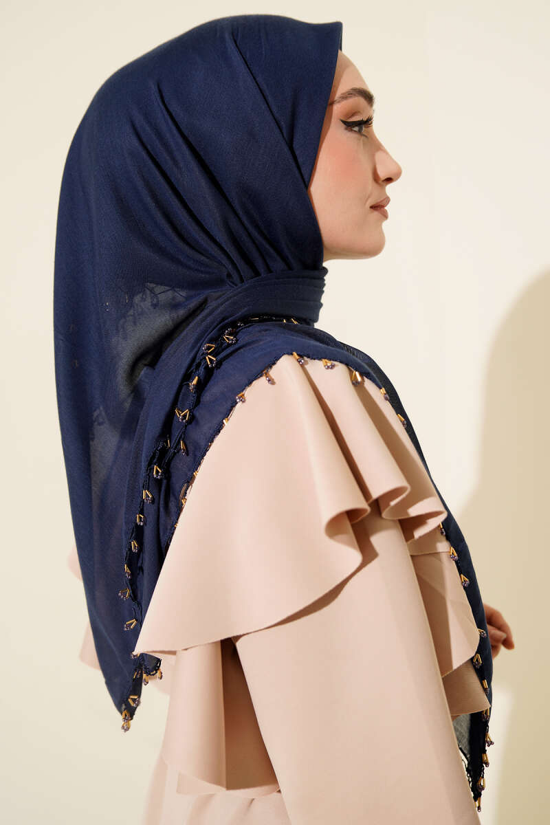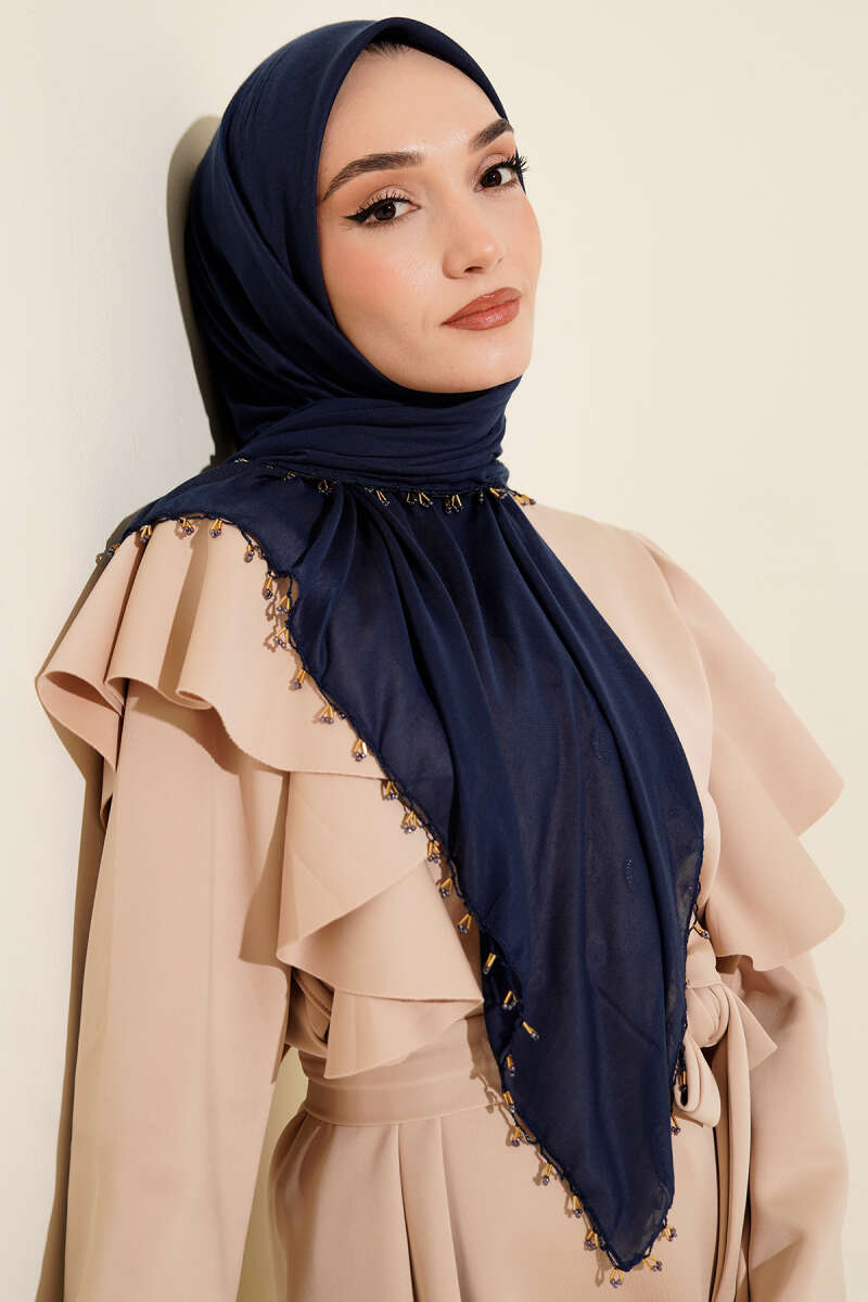 Mini Boncuk Detaylı Eşarp Kayrak Grisi