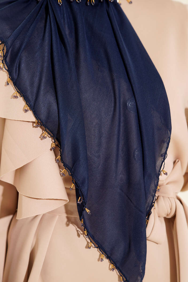 Mini Boncuk Detaylı Eşarp Bordo