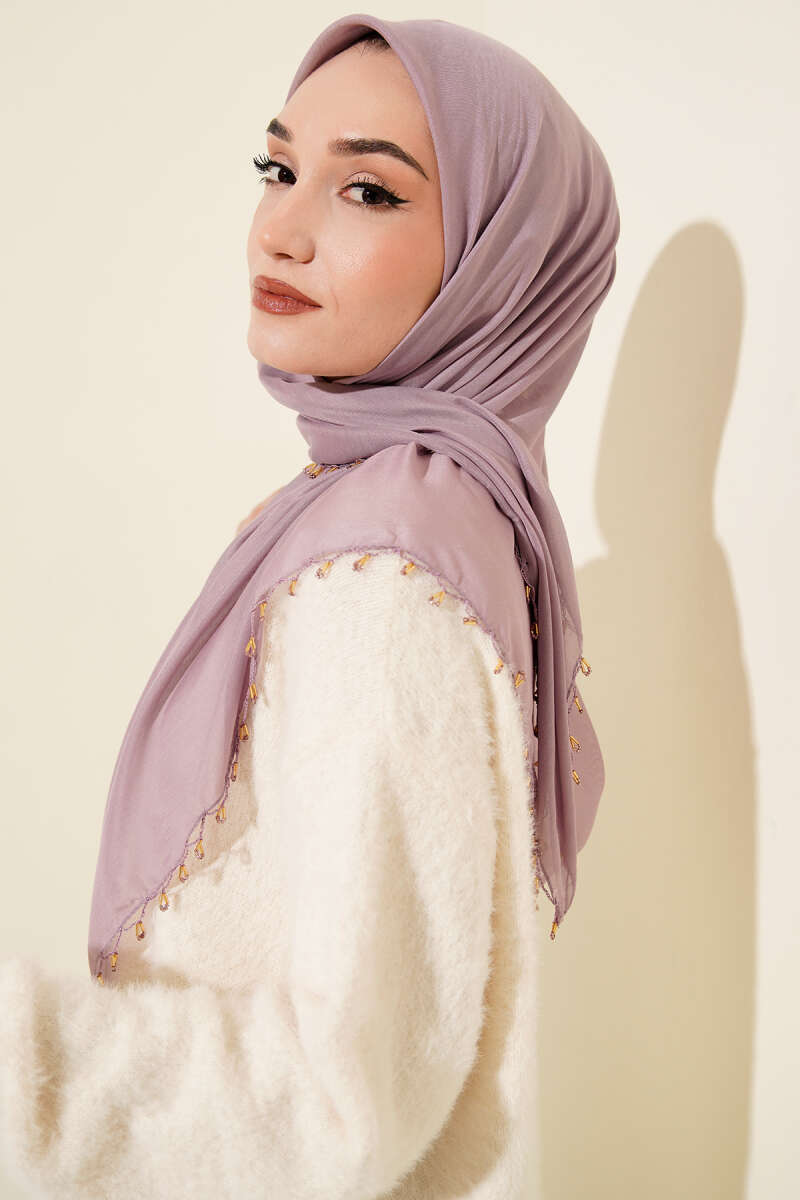 Mini Boncuk Detaylı Eşarp Kırmızı