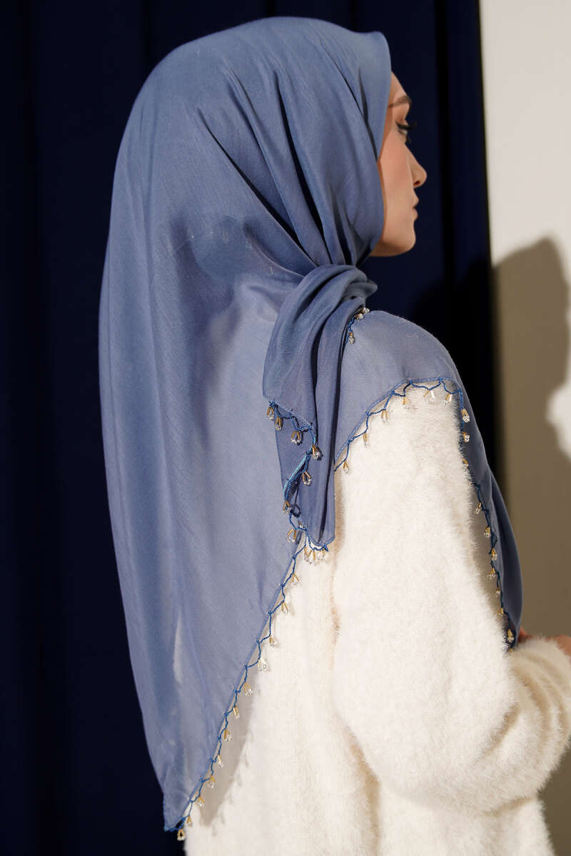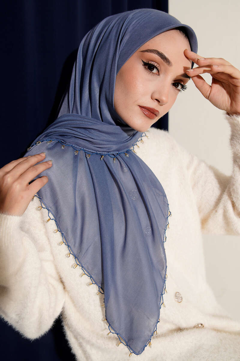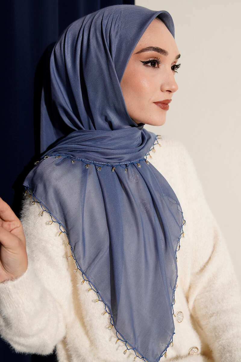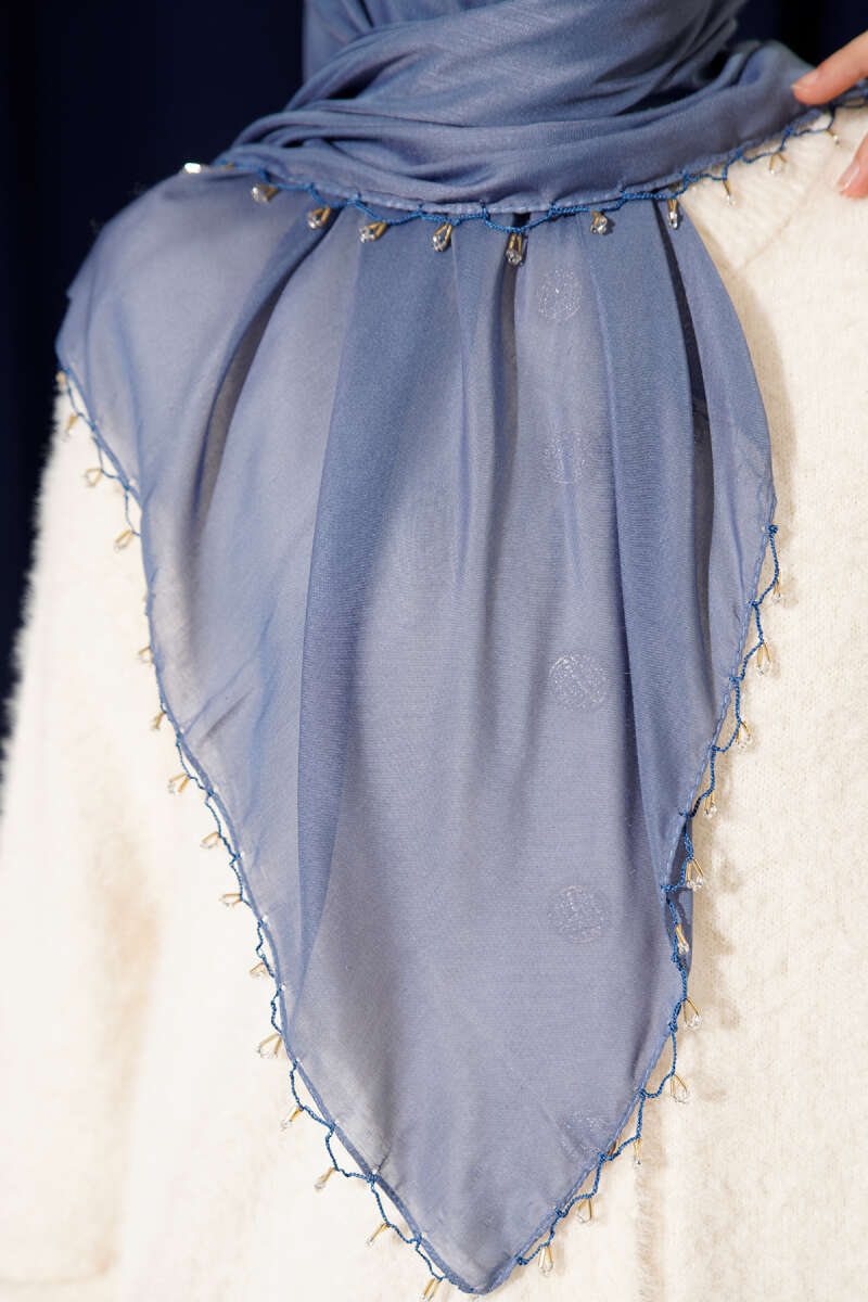 Mini Boncuk Detaylı Eşarp Kayrak Grisi