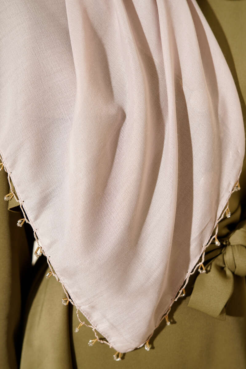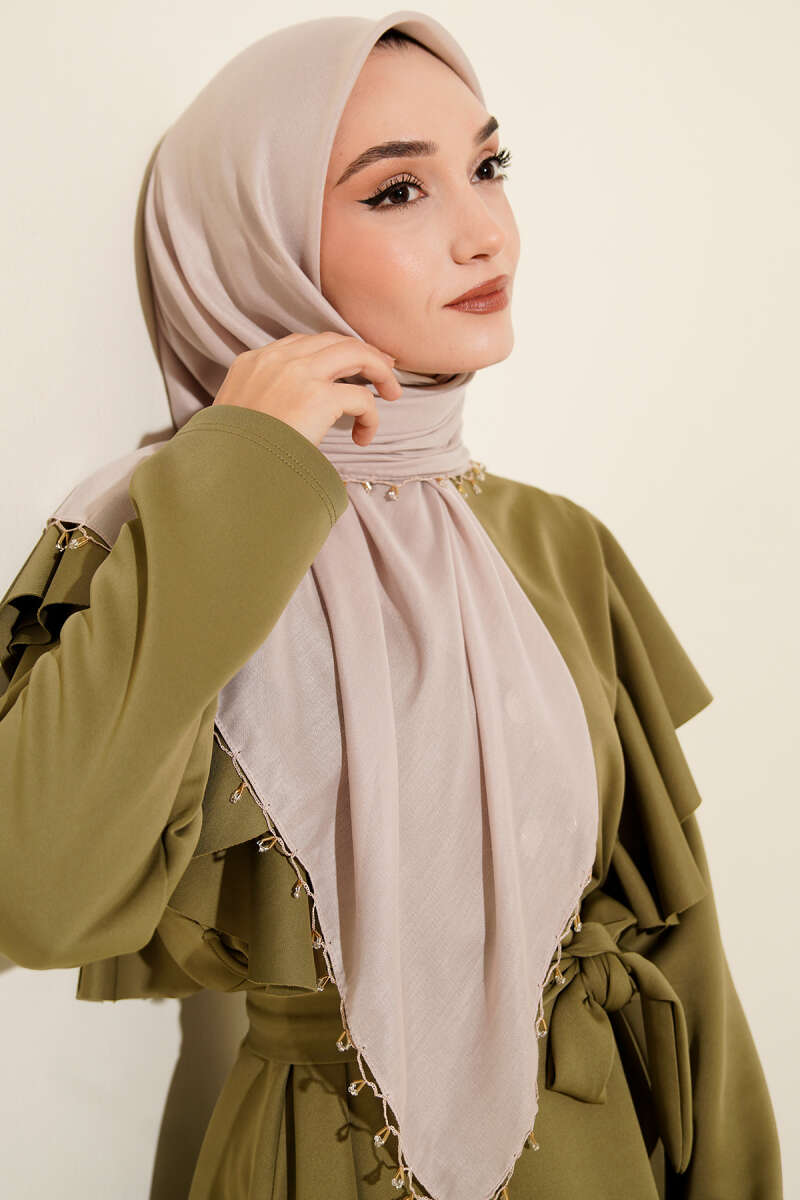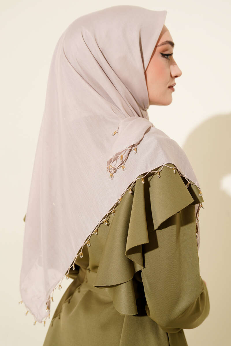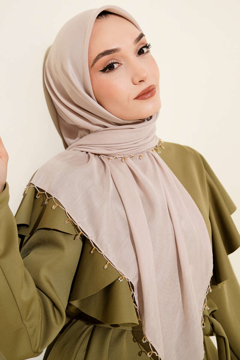 Mini Boncuk Detaylı Eşarp Kayrak Grisi