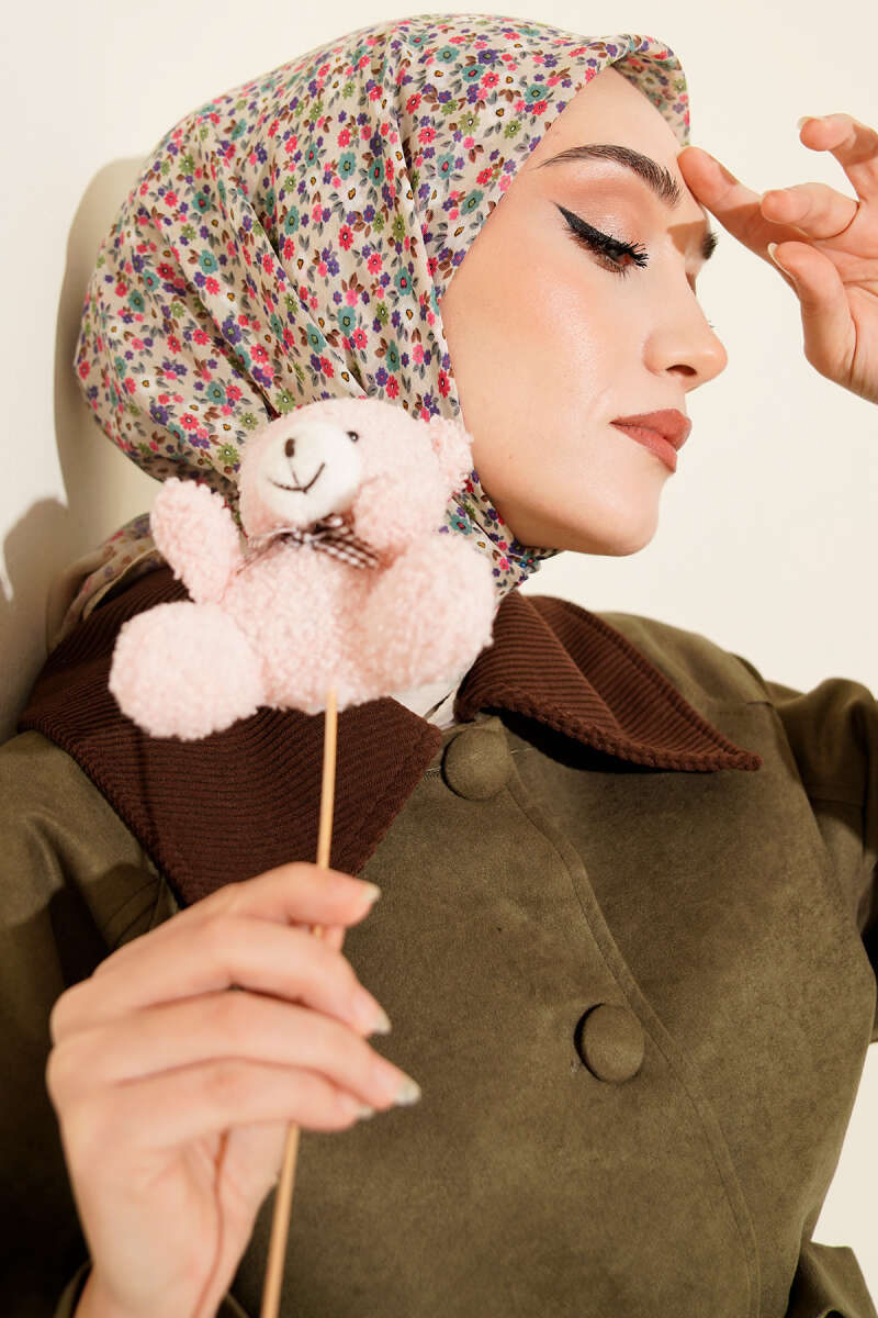 Mini Çiçek Desenli Eşarp Siyah Füme