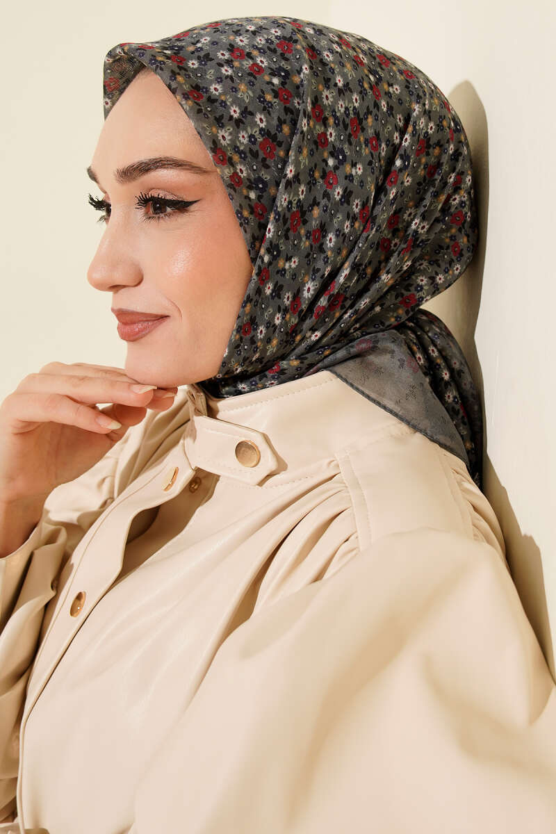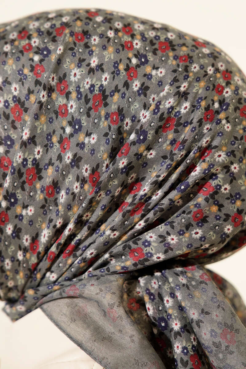 Mini Çiçek Desenli Eşarp Siyah Füme