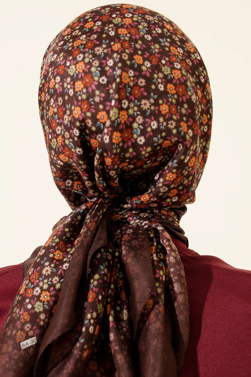 Mini Çiçek Desenli Eşarp Siyah Füme