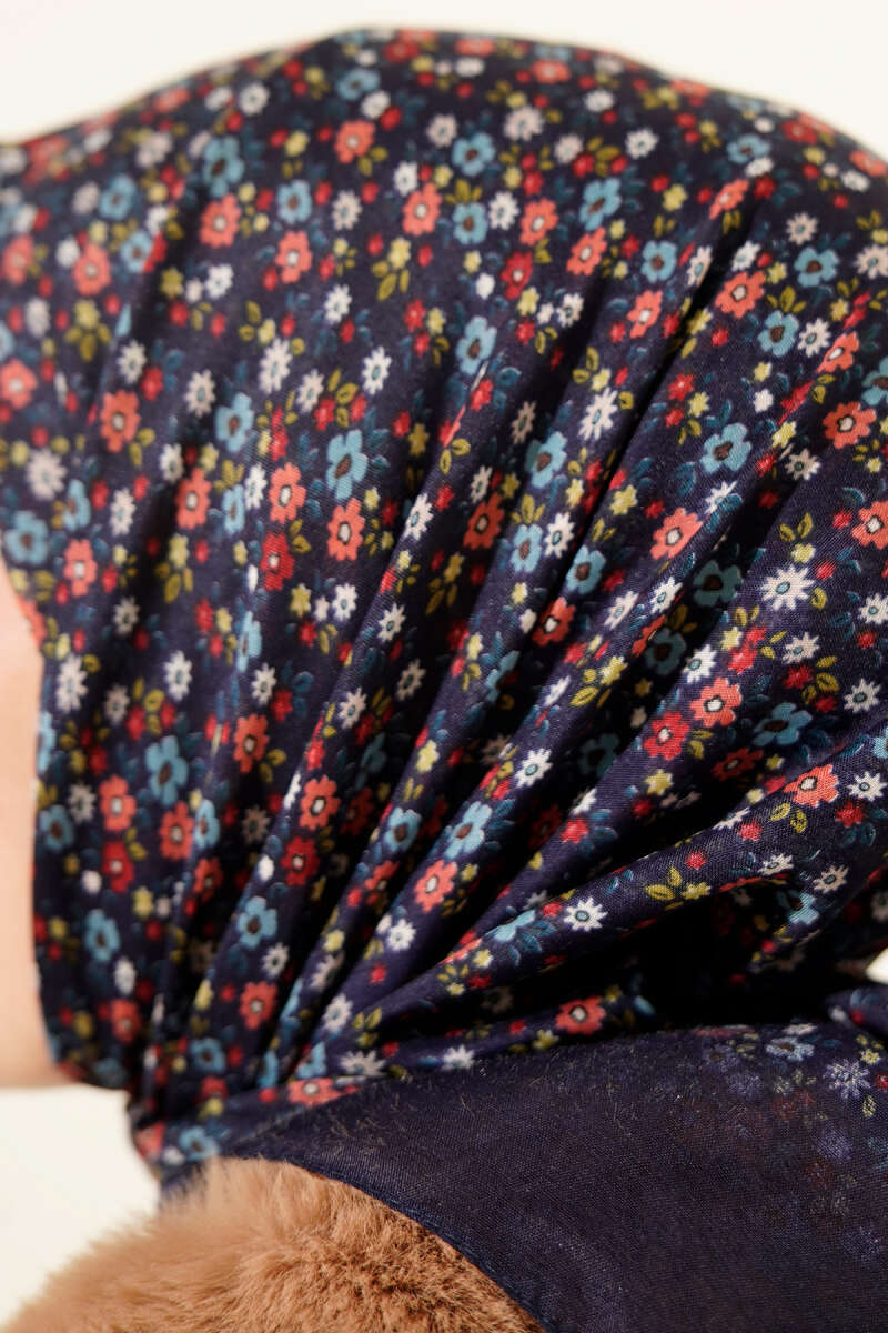 Mini Çiçek Desenli Eşarp Lacivert Mavi