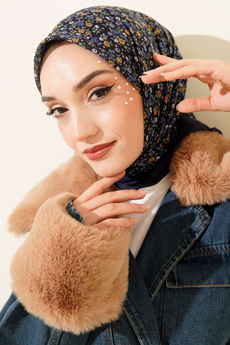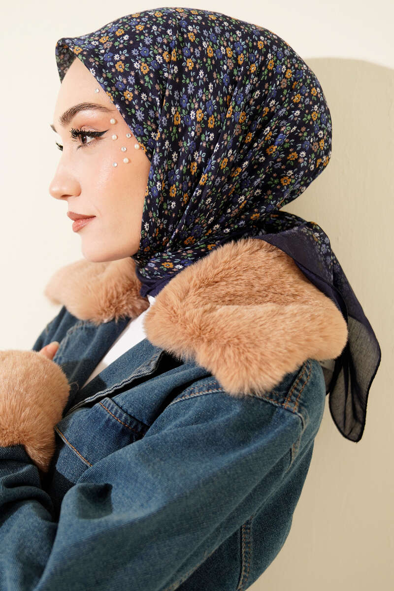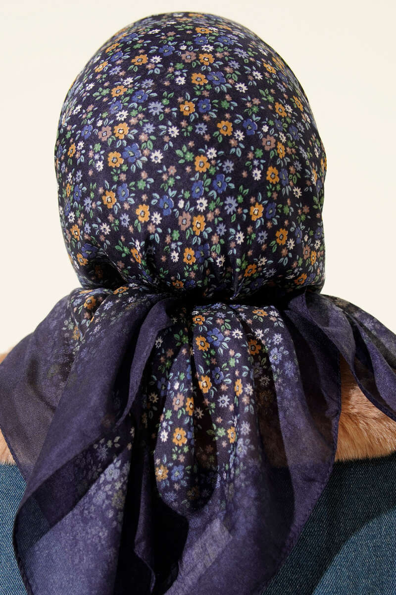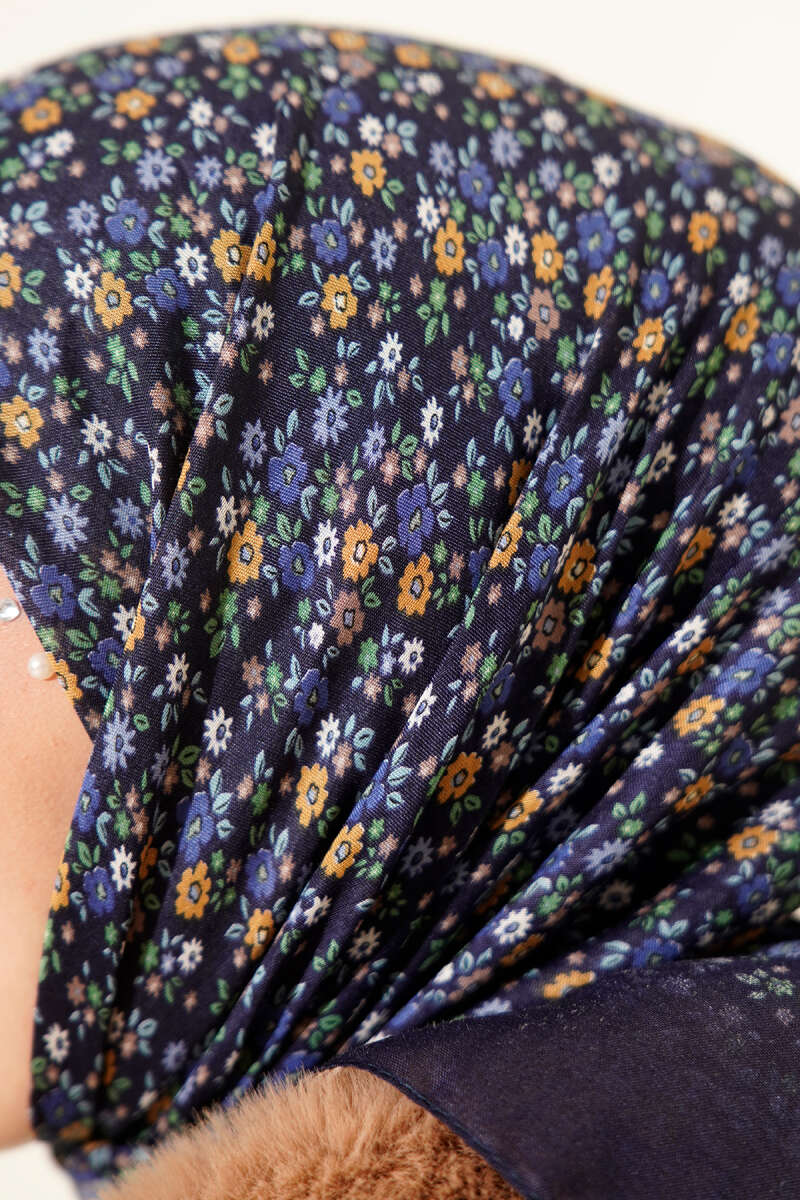 Mini Çiçek Desenli Eşarp Lacivert Mavi
