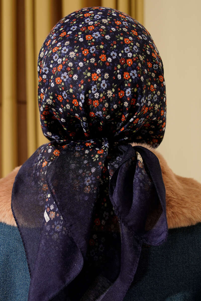 Mini Çiçek Desenli Eşarp Lacivert