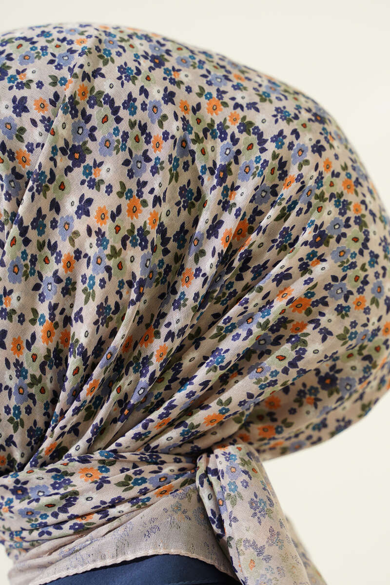 Paisley Flamu Cotton Eşarp Lacivert Mavi