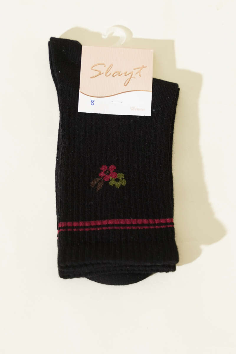Mini Çiçek Detaylı Kadın Soket Çorap Siyah