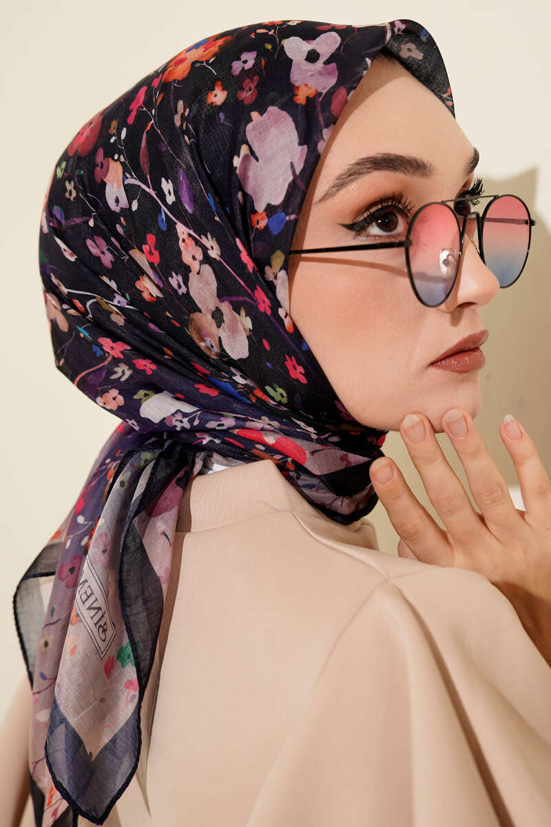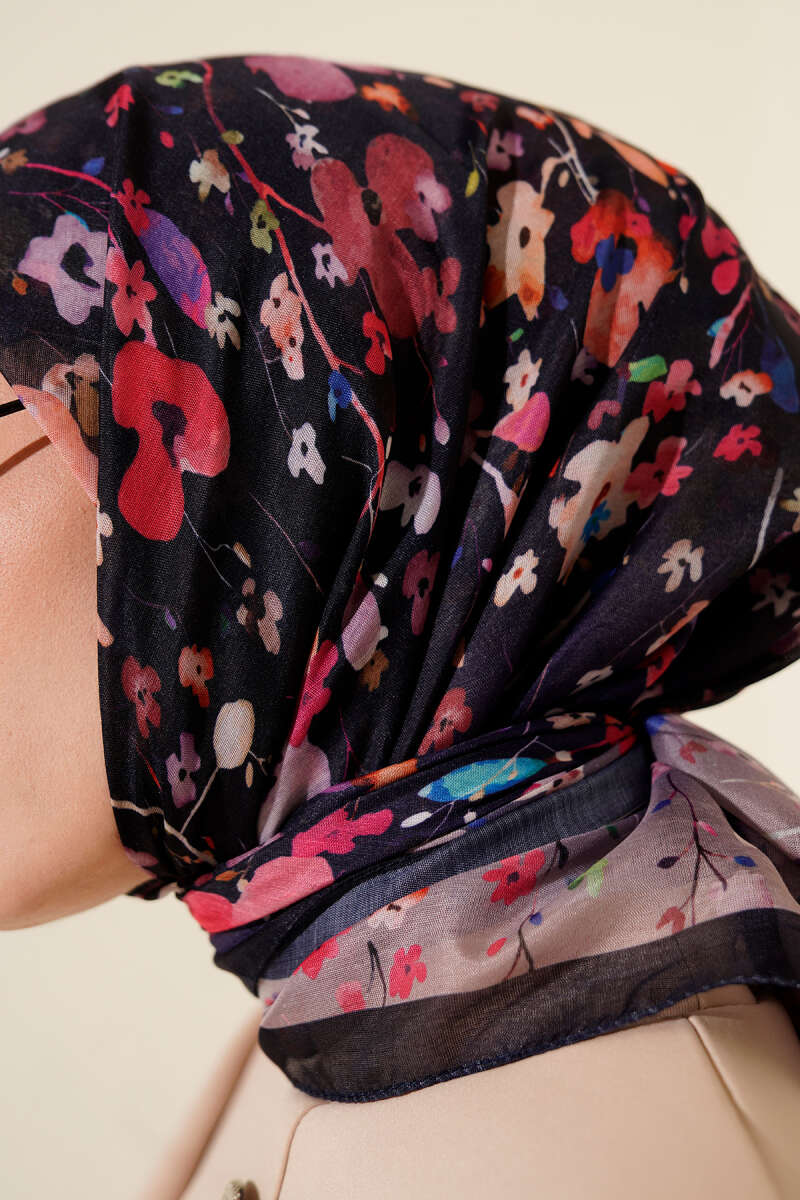 Batik Çiçek Desen Rami Şal Kahve
