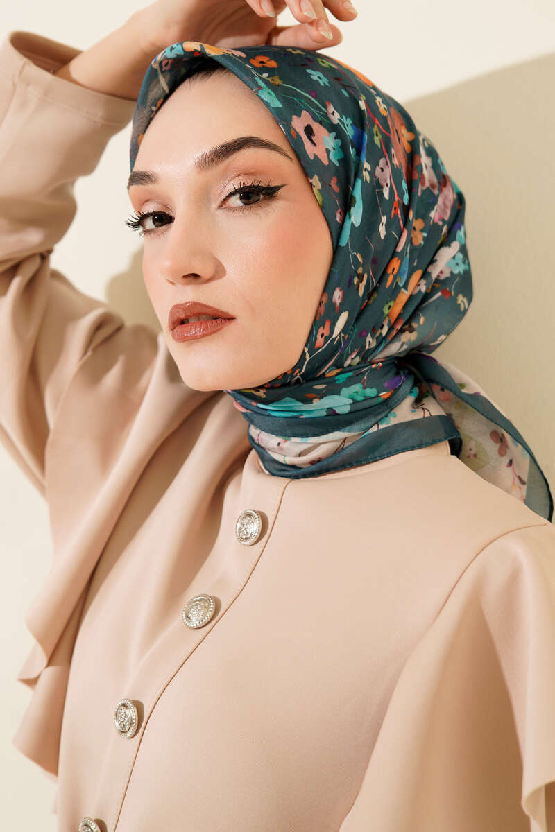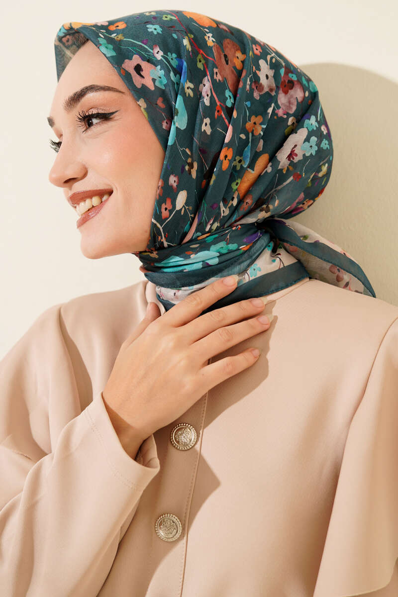 Selvi Boylum Al Yazmalım Zümrüt Yeşili Tülbent