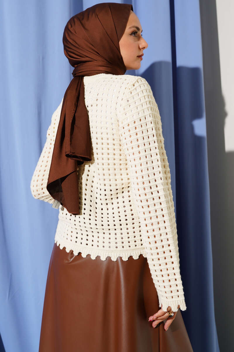 Şal Yaka Pirinç Örgü Triko Hırka Ekru