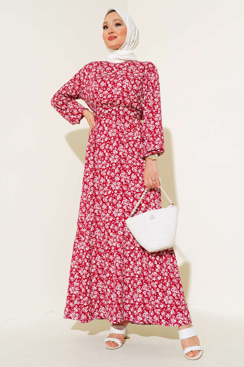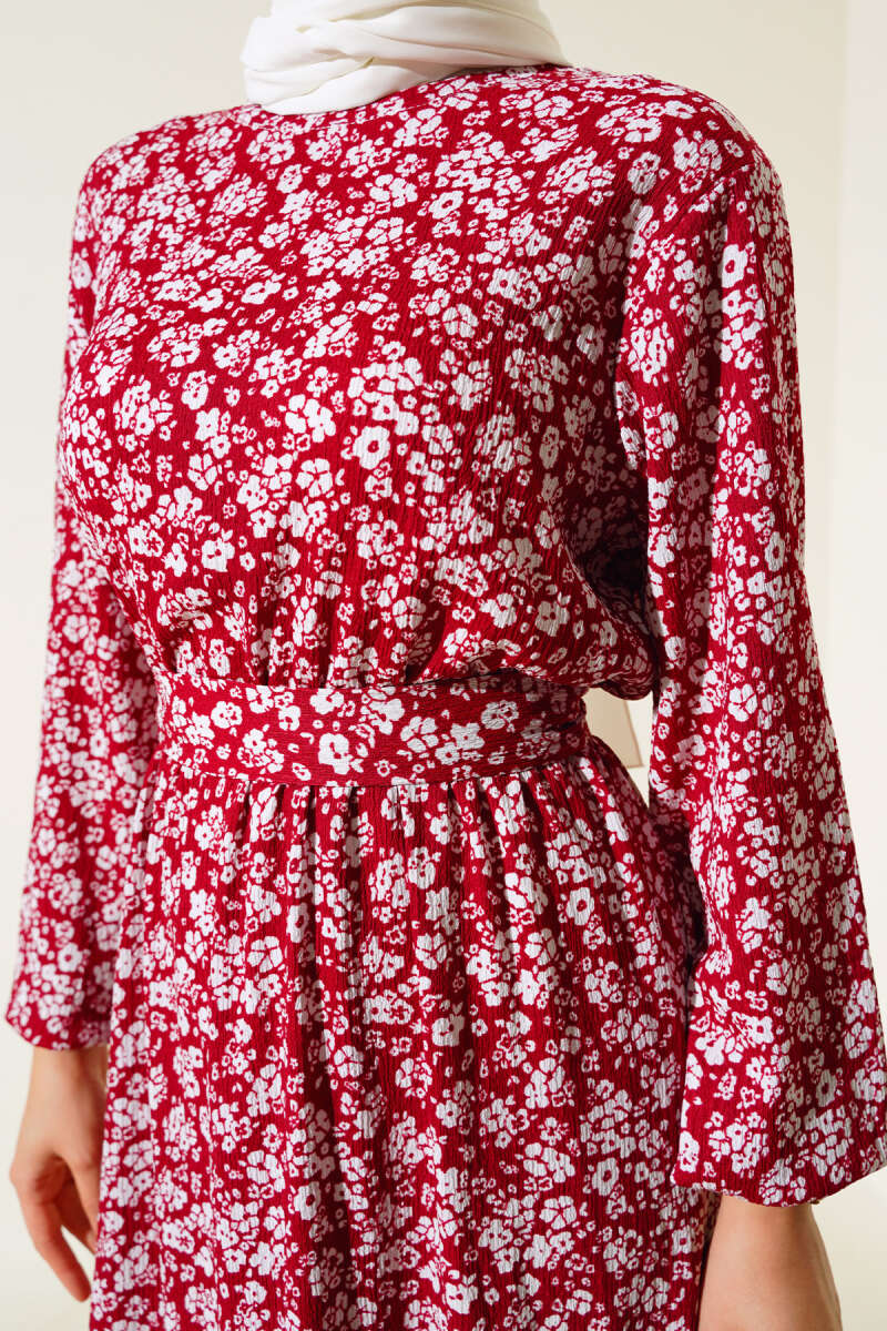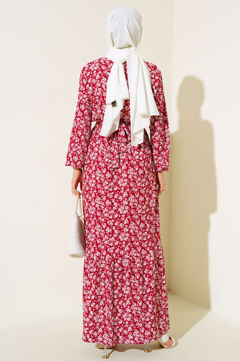 Çiçek Motifli Tül Pelerinli Abiye Elbise Bordo