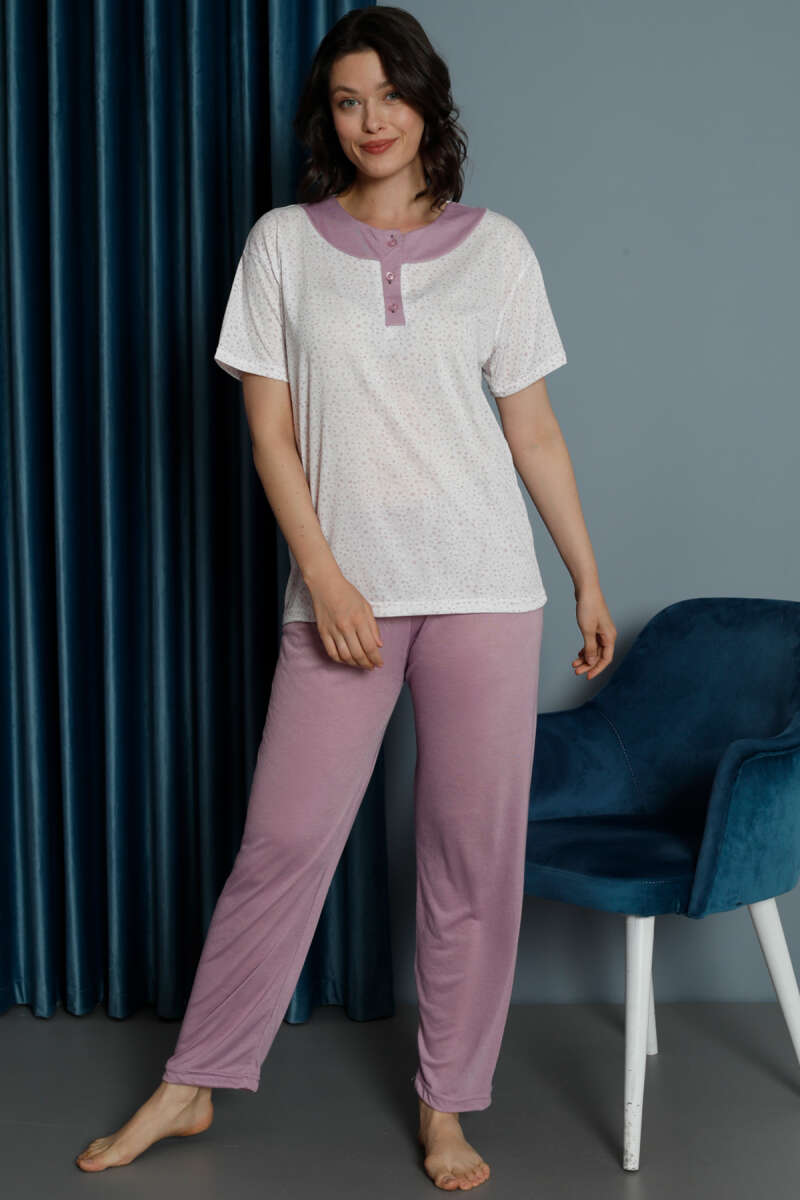 Mini Çiçekli Viskon Pijama Takımı Gül Kurusu