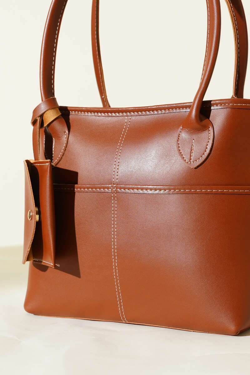 Mini Cüzdan Detaylı Uzun Kulplu Çanta Acı Kahve