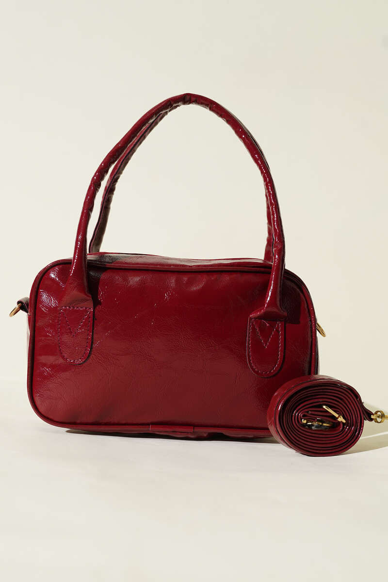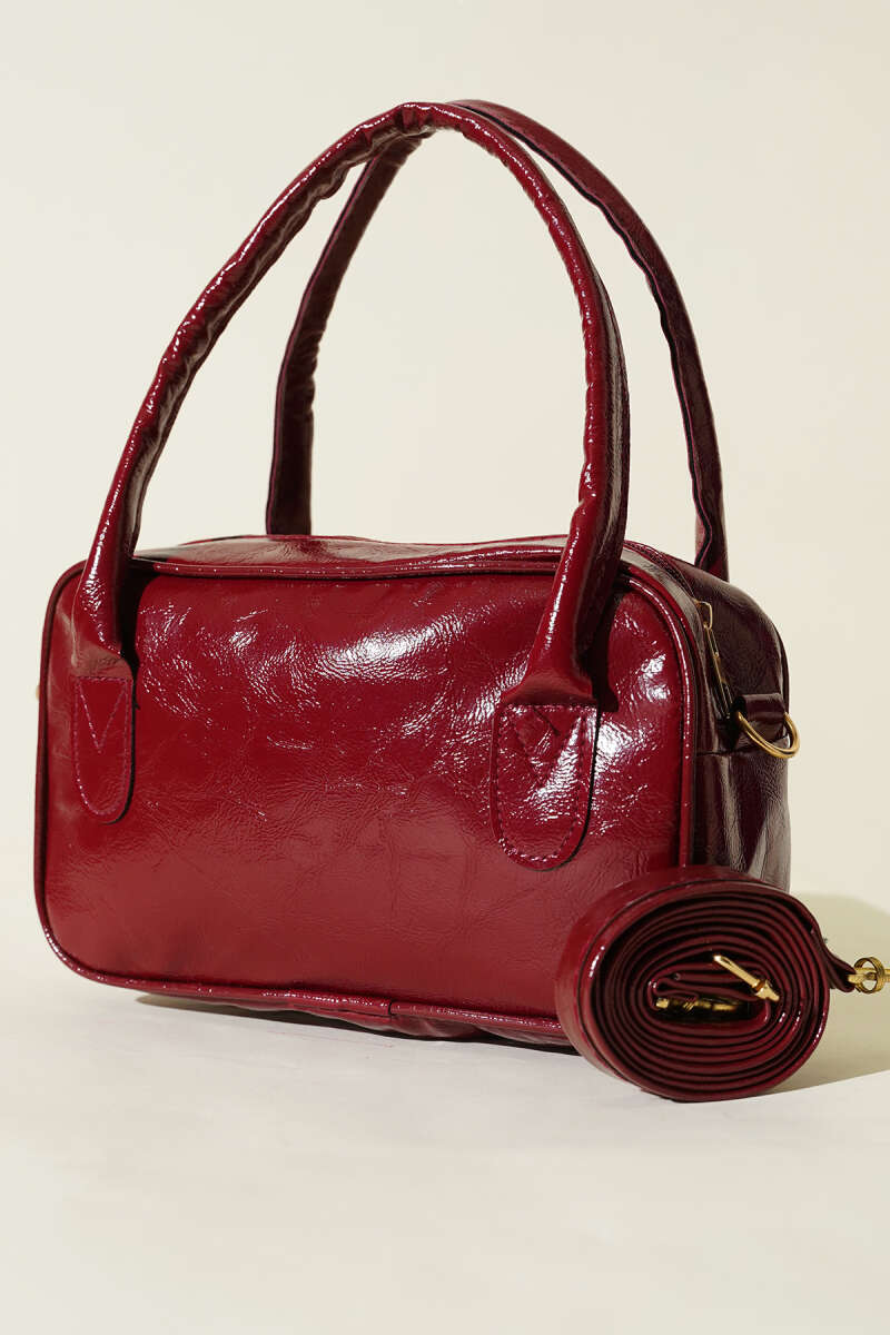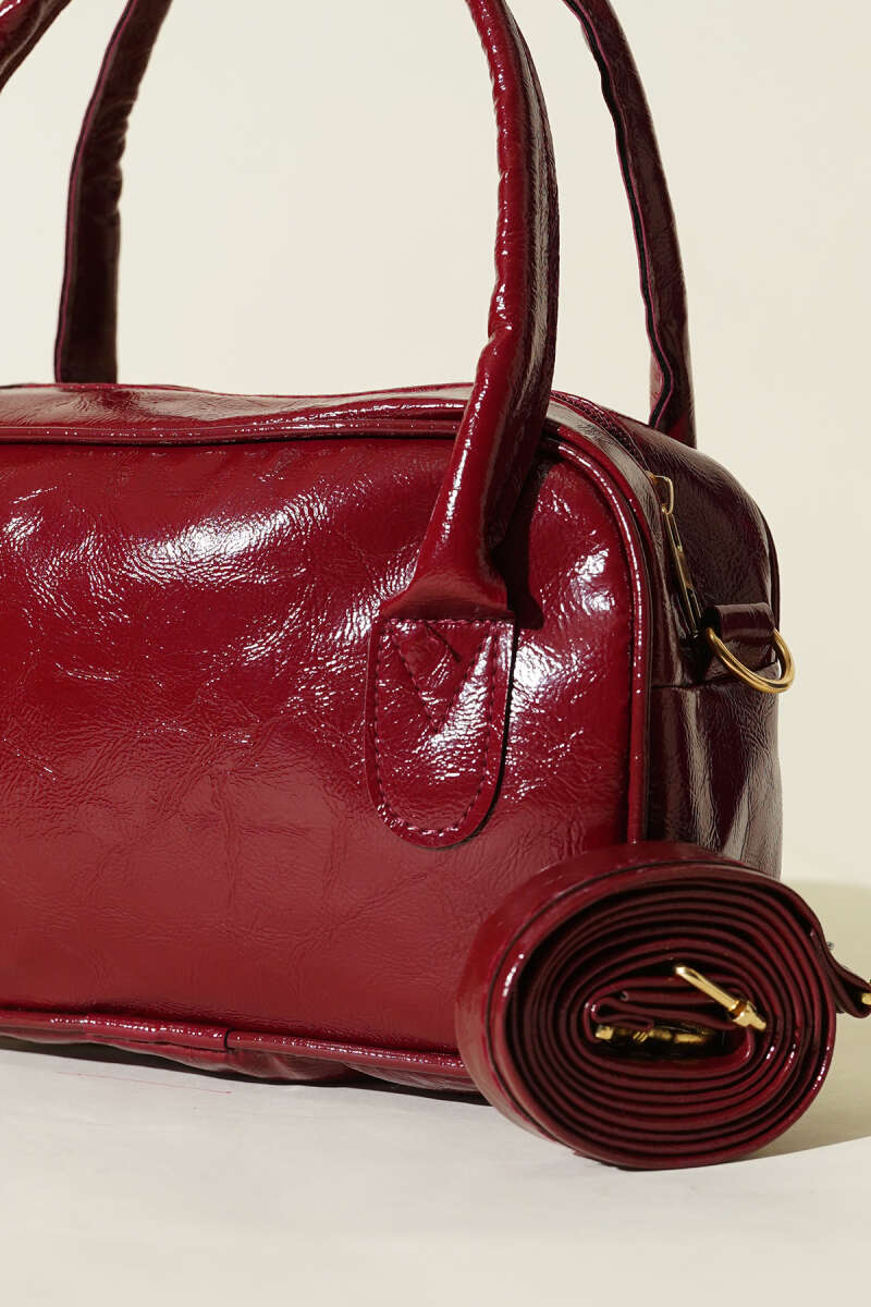 Tek Kemer Detaylı Rugan Çanta Siyah Kroko
