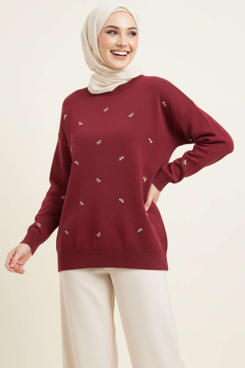 Omuz Vatkalı Degaje Yaka Sandy Bluz Bordo