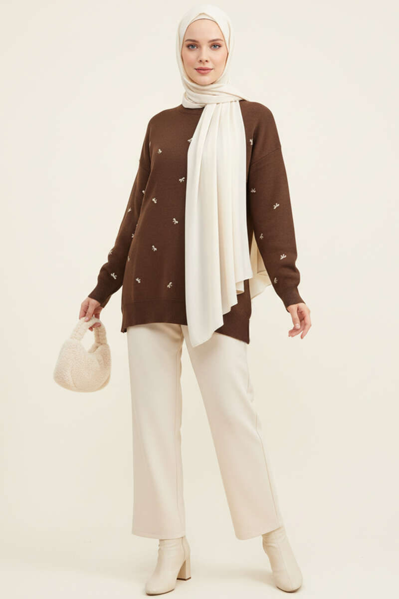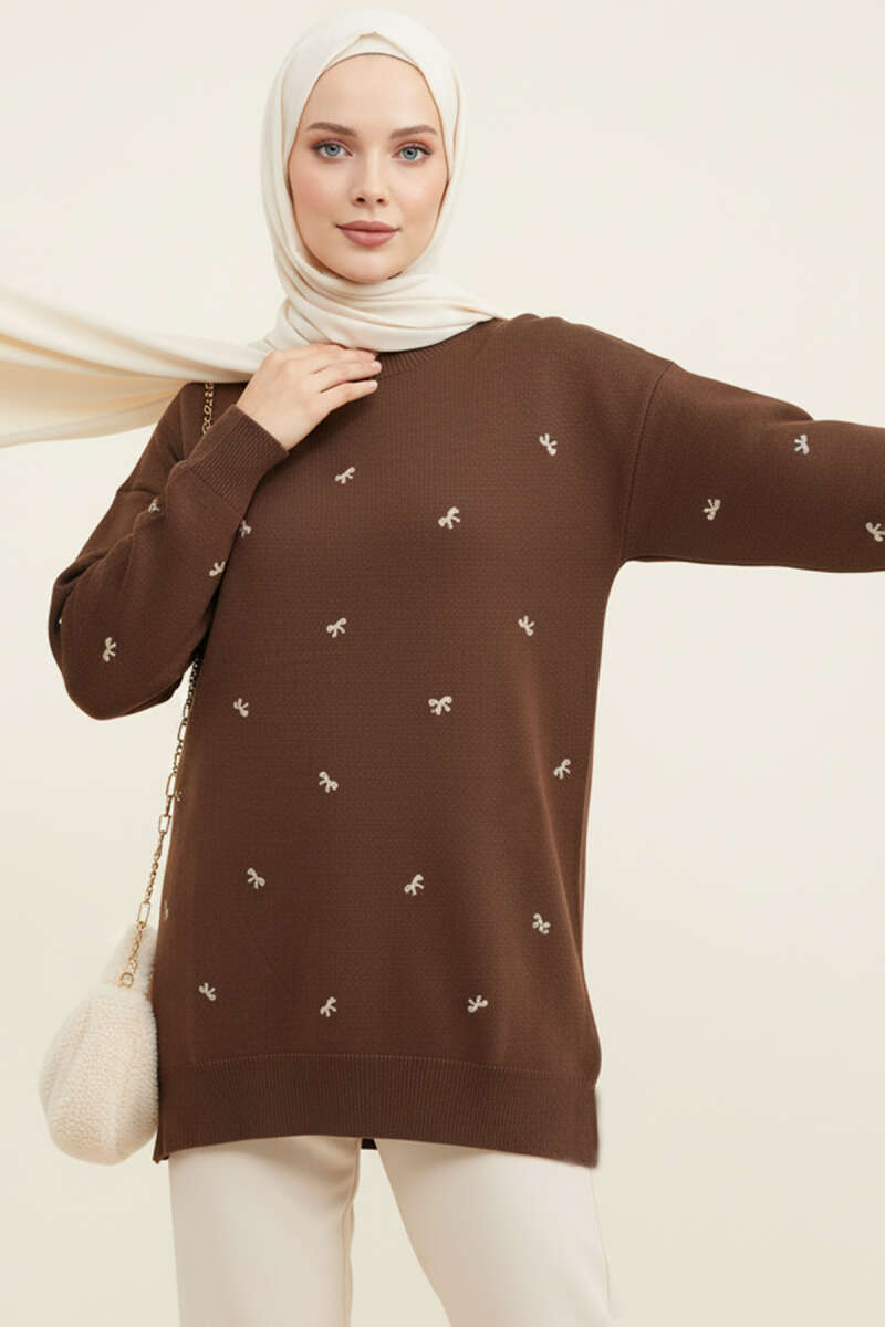 Salkım Kabartma Yumoş Triko Tunik Vizon