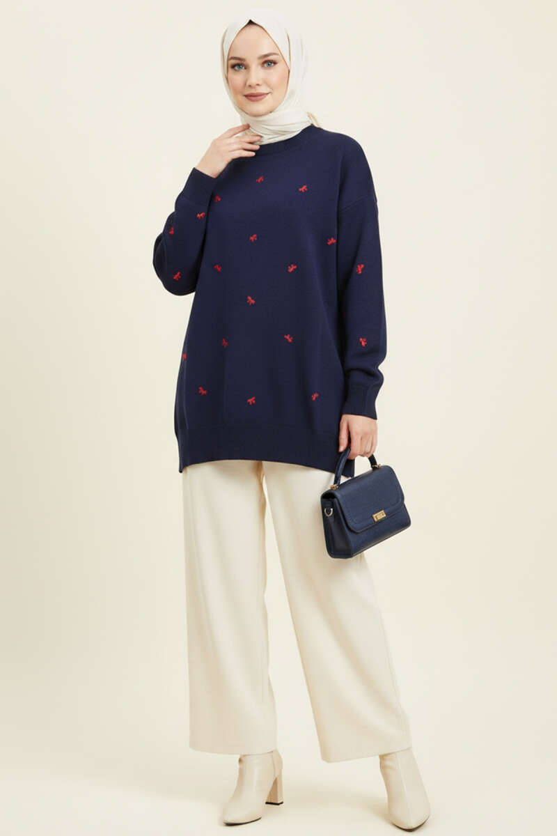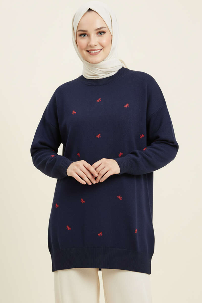 Balıkçı Yaka Fitilli Salaş Triko Tunik Kahve