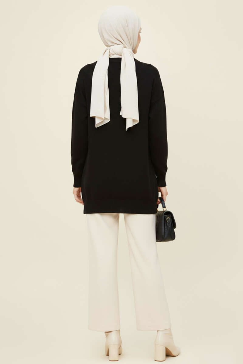 Kol Armalı Loyşa İp Kuşaklı Tunik Siyah