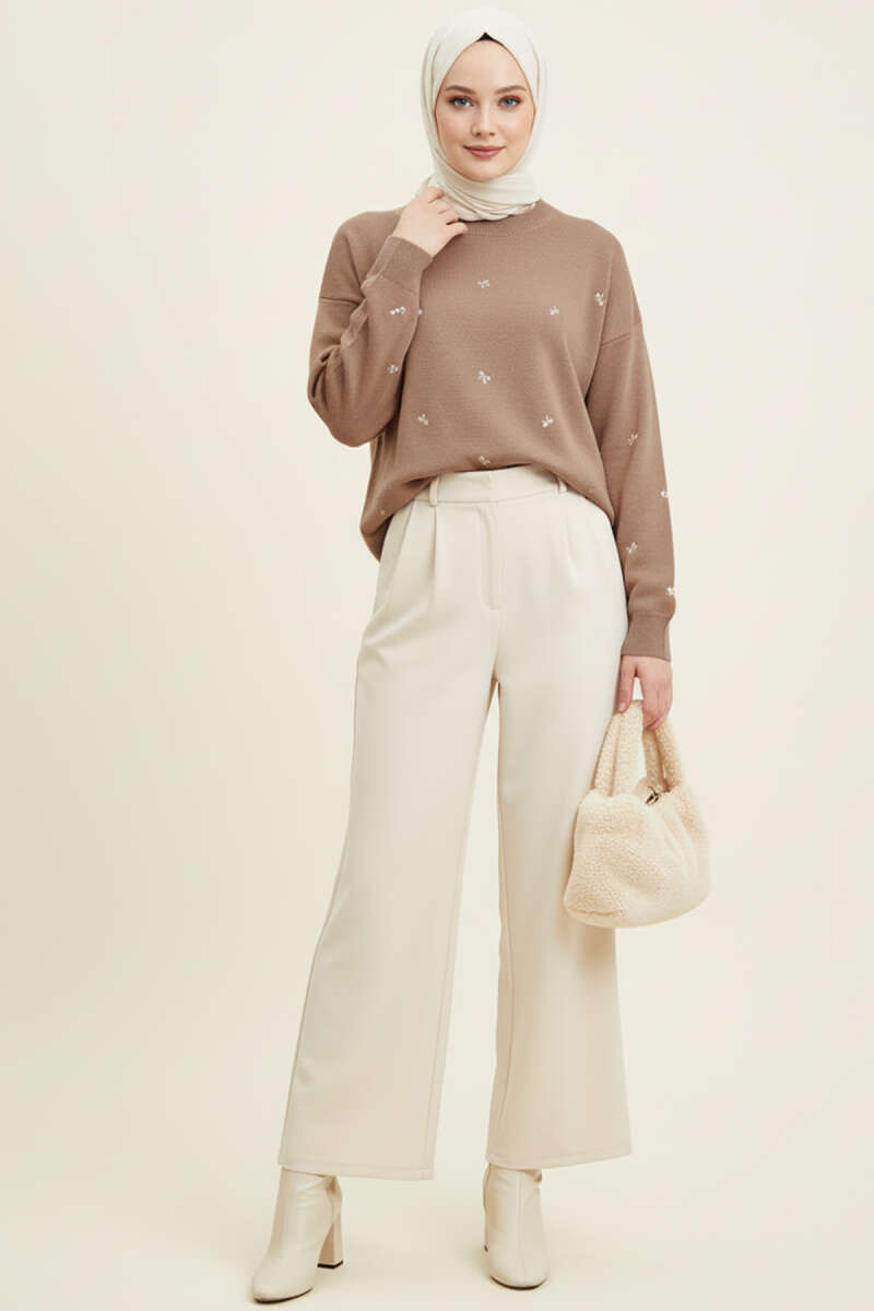 Bel Lastikli Çımalı Scuba Pantolon Bej