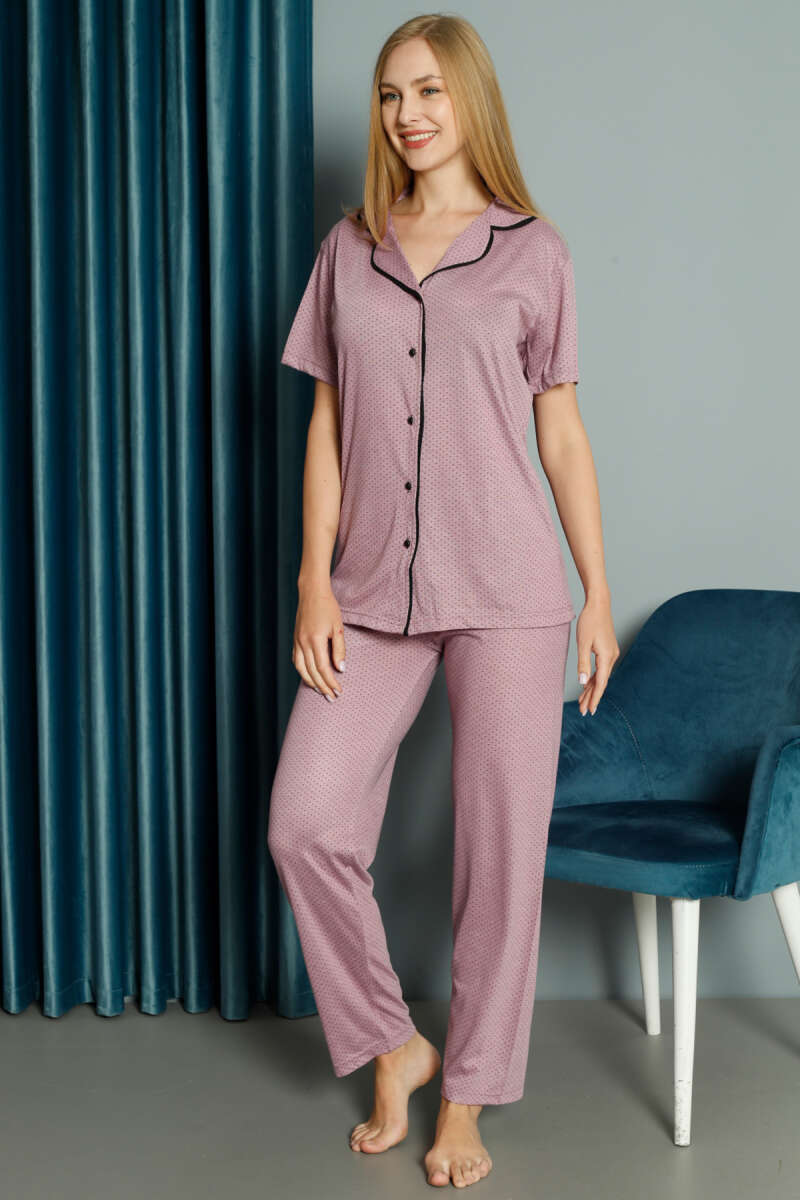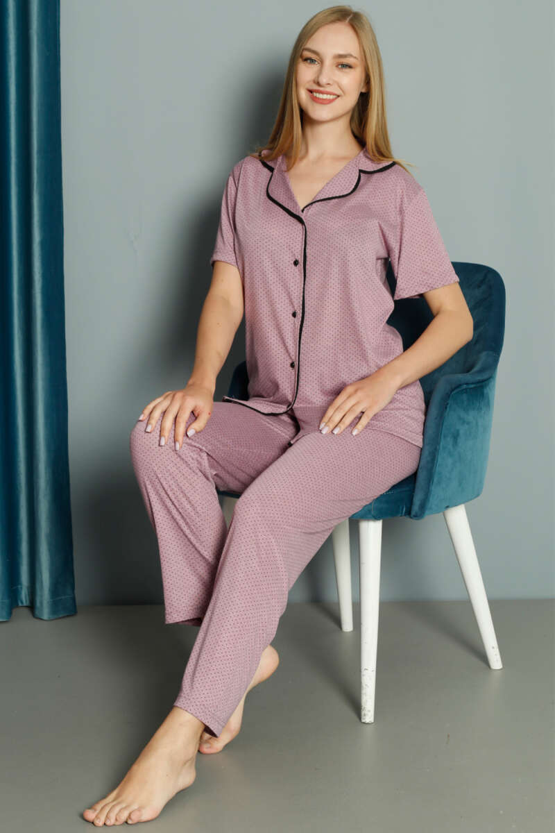 Mini Puantiyeli Kısa Kol Pijama Takımı Magenta