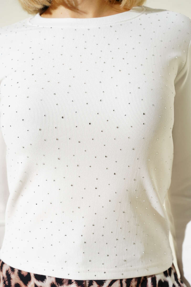 Gömlek Yaka Önü Taşlı Elbise Beyaz