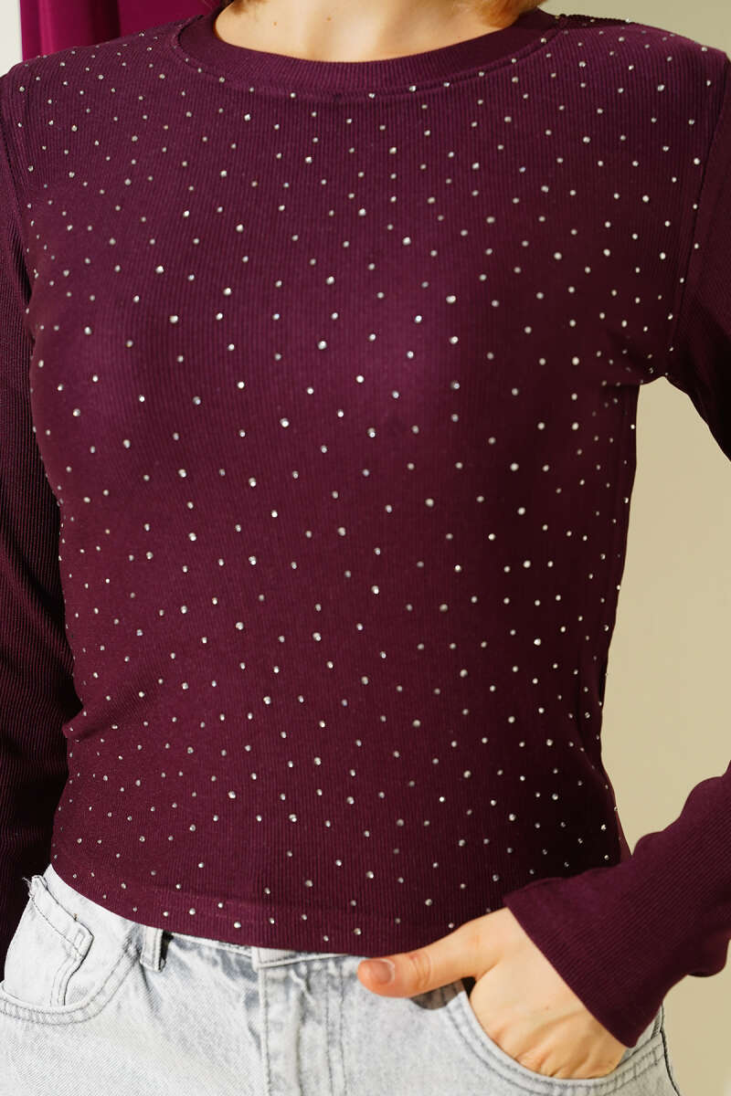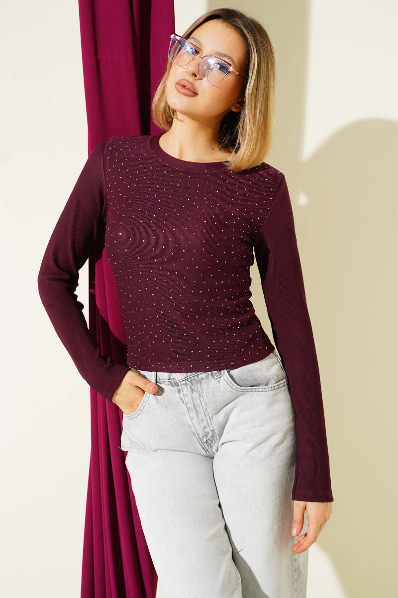 Taşlı Fermuarlı Kısa Triko Hırka Taş