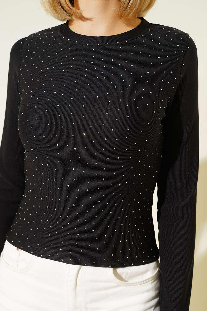Gömlek Yaka Düğmeli Triko Tunik Siyah