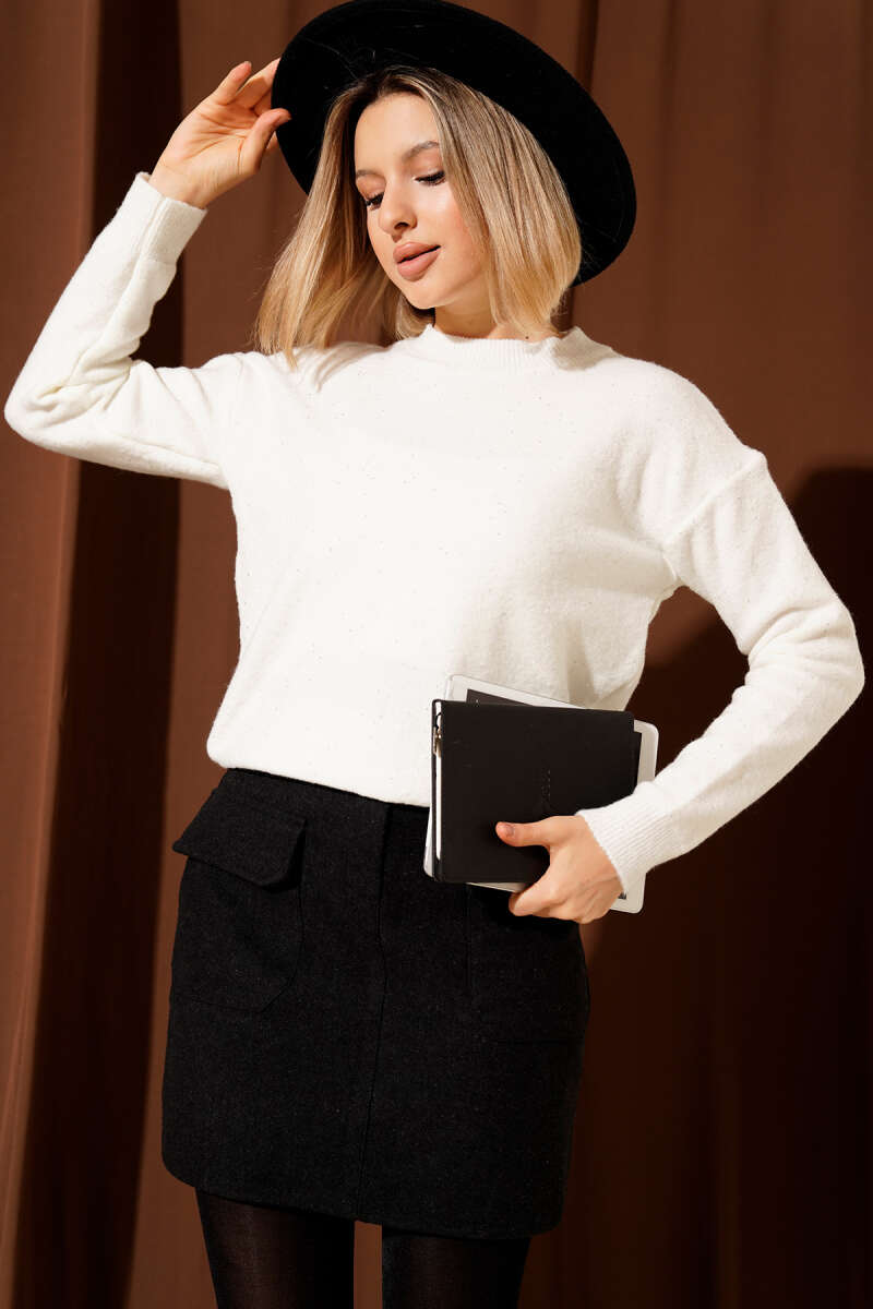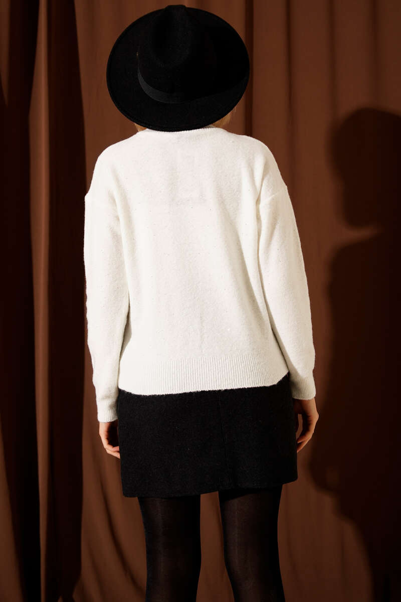 Leopar Sakallı Triko Süveter Latte