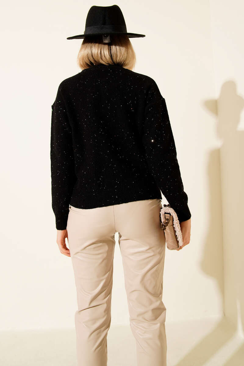 Örgülü Yanları Bağlamalı Kısa Süveter Füme
