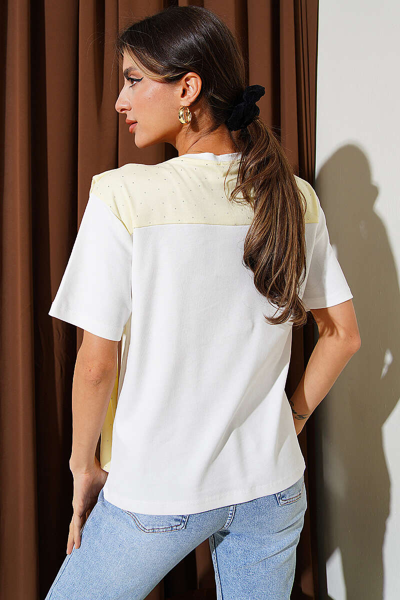 Nakışlı Düğmeli Yarım Kol Gömlek Bej