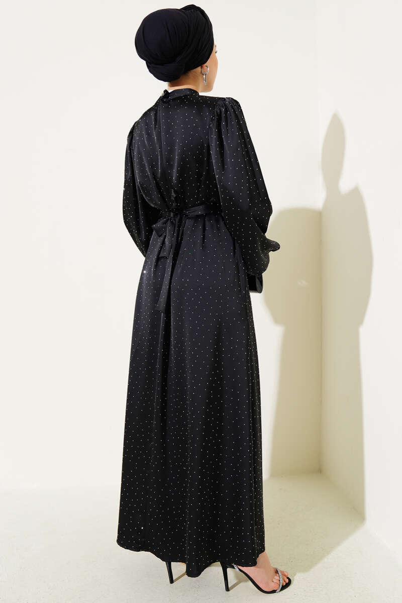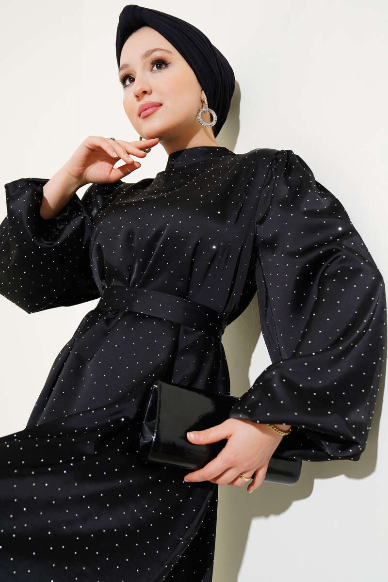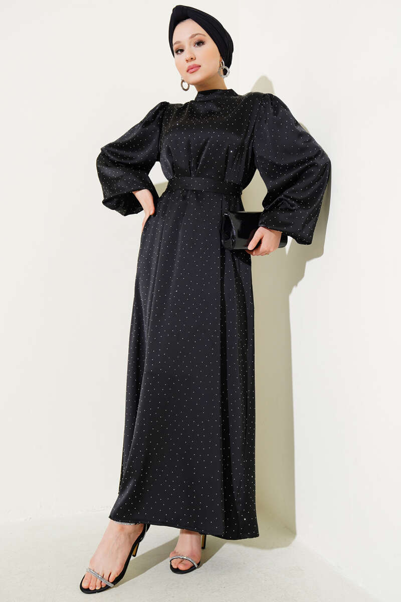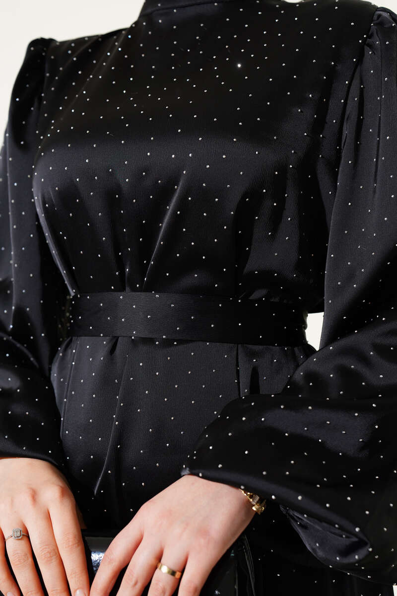Bel Büzgü Detaylı Abiye Elbise Siyah