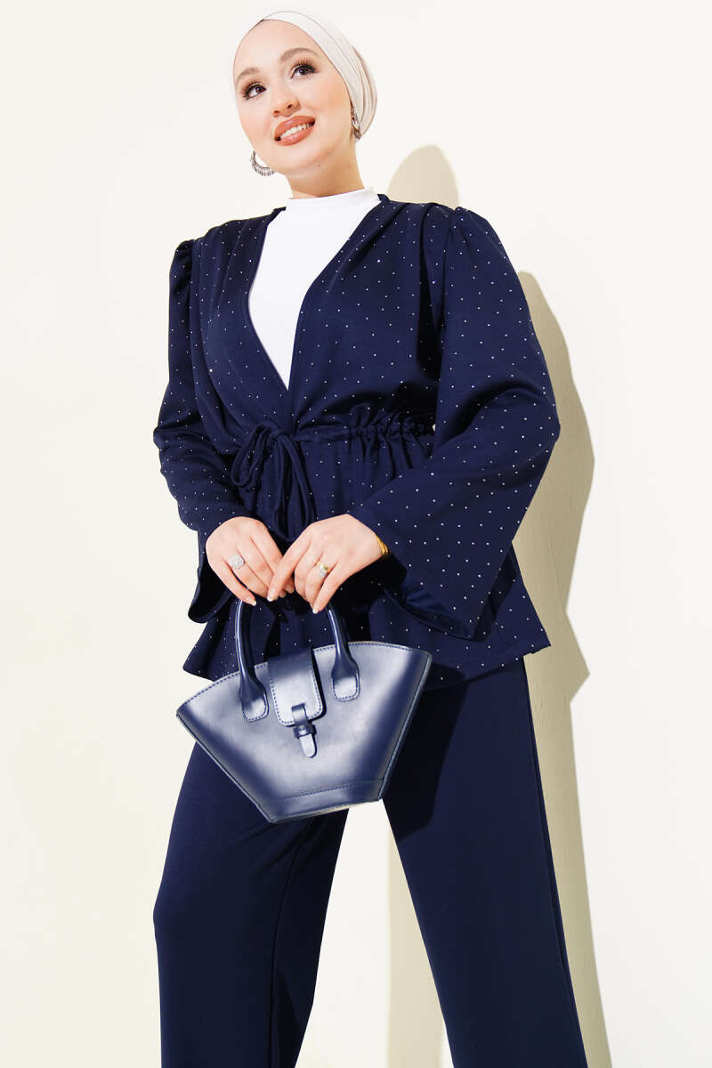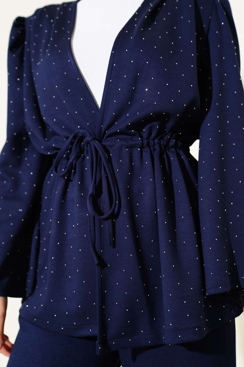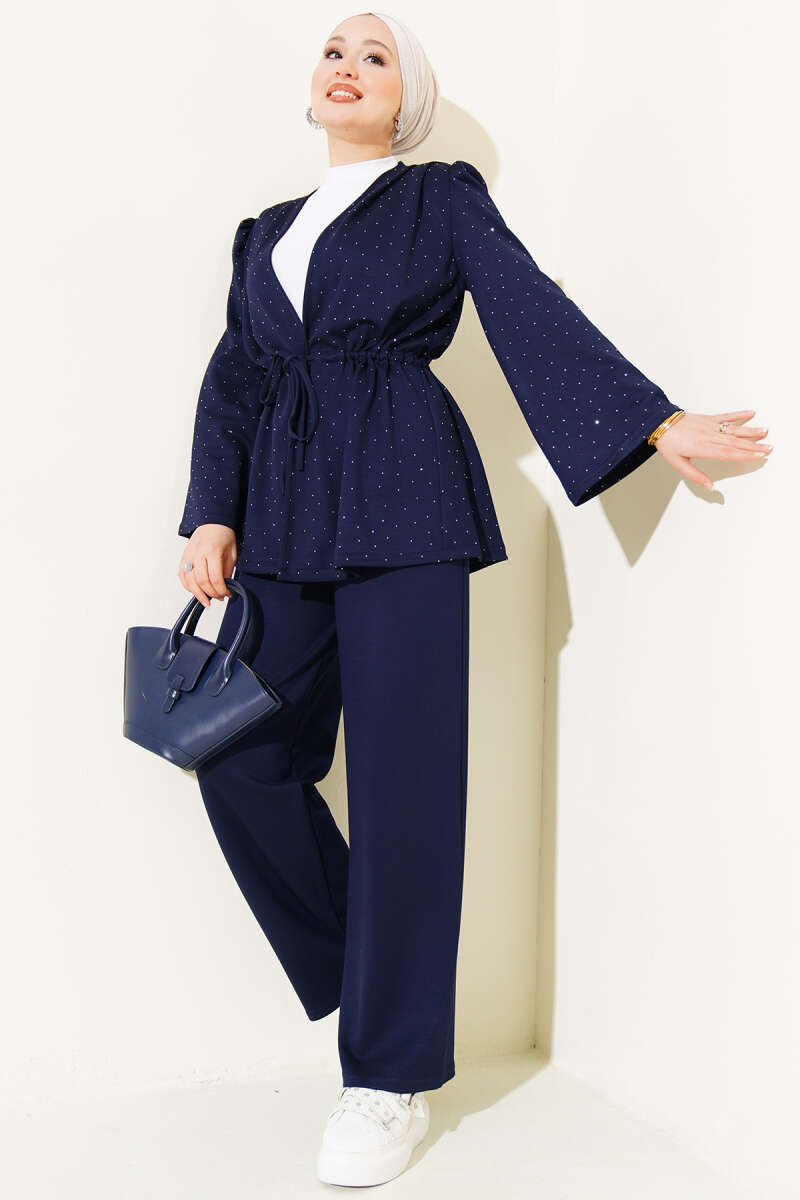 Mini Taşlı Bel Tünelli Loyşa İkili Takım Siyah