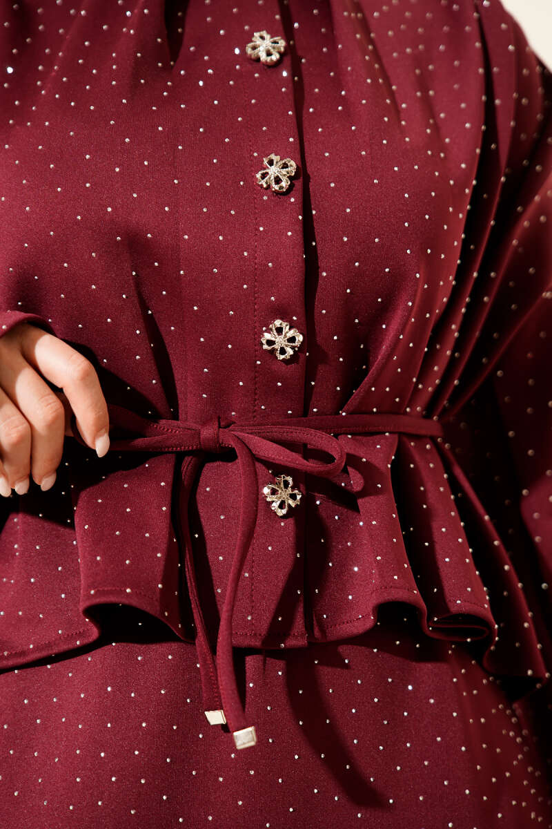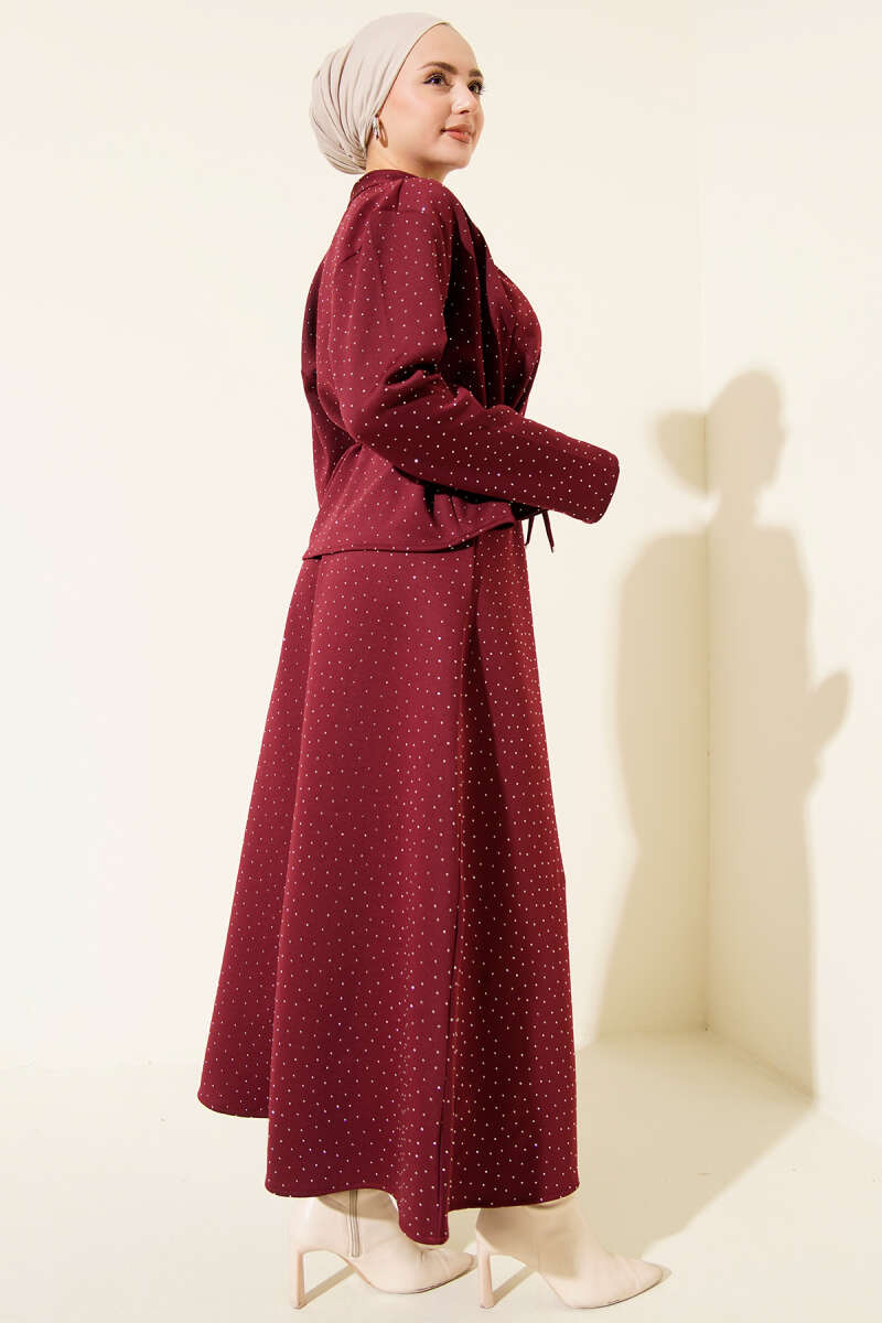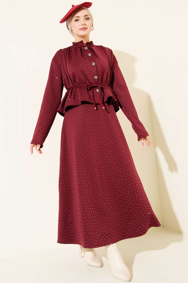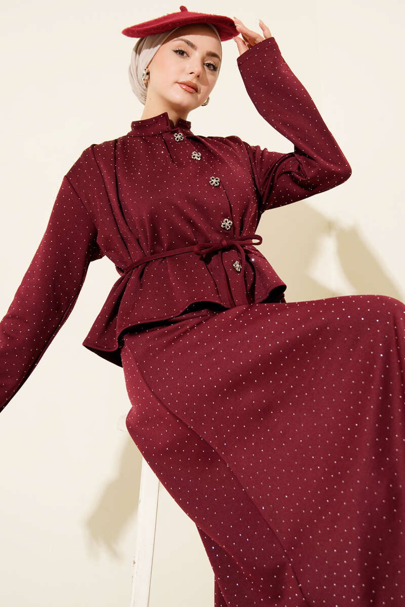 Bel Lastikli Gold Aksesuarlı İkili Takım Bordo