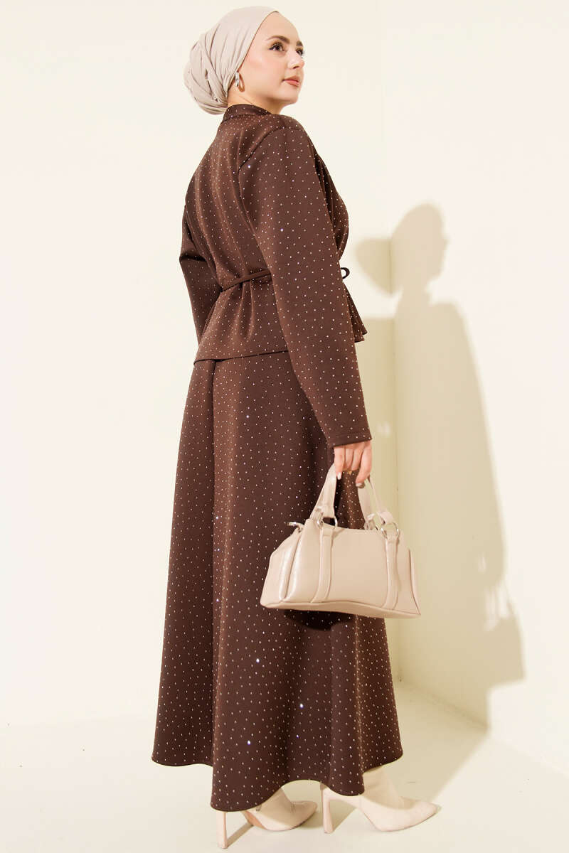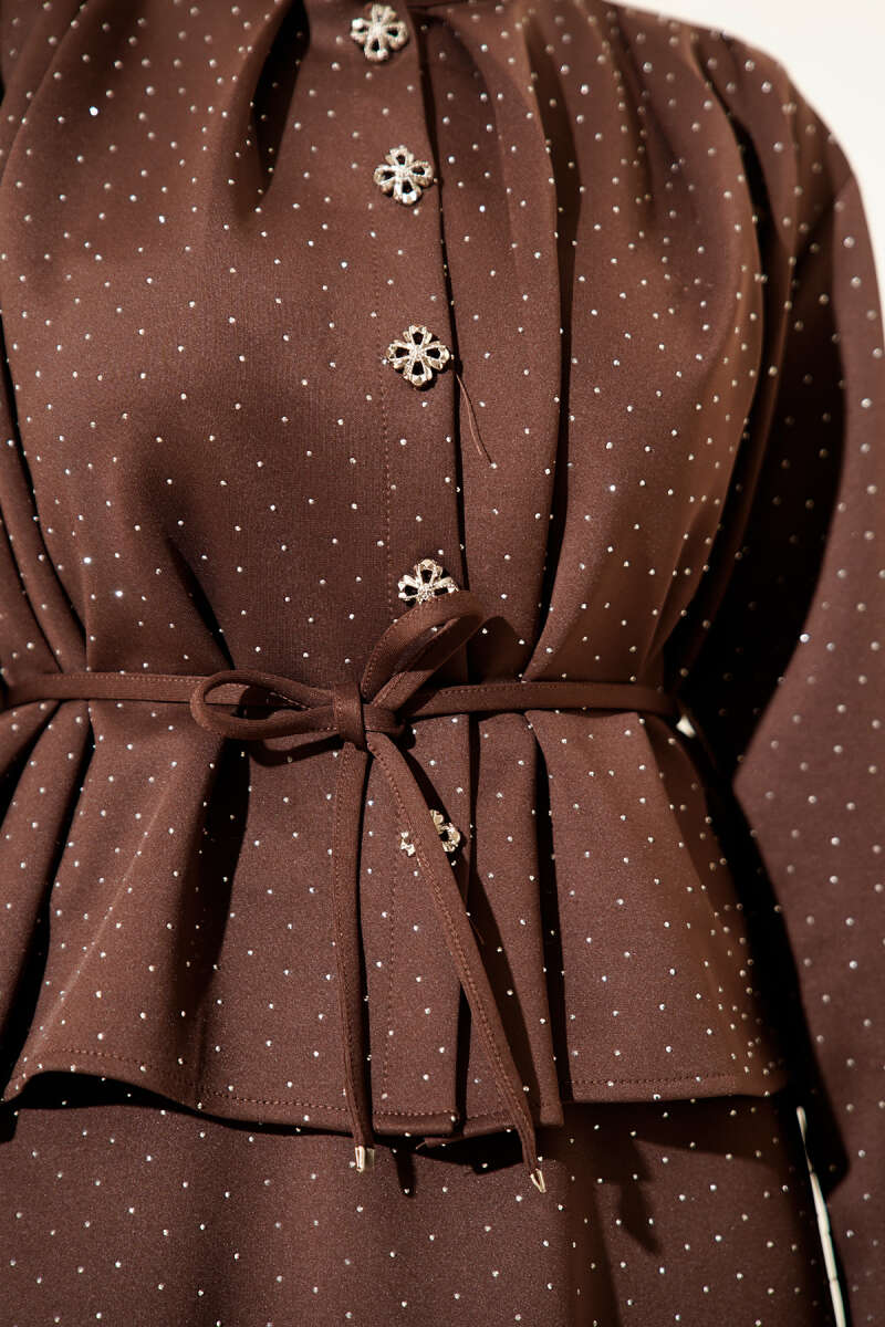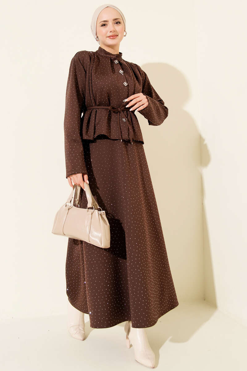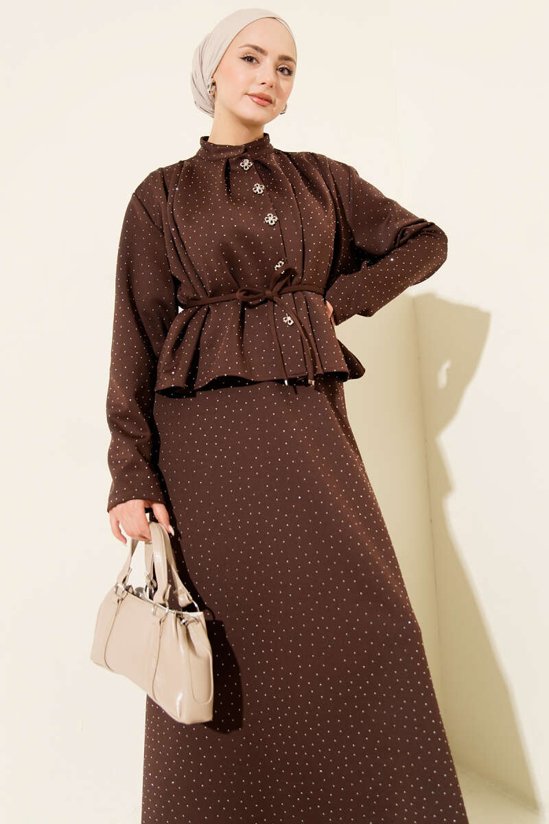 Bel Lastikli Gold Aksesuarlı İkili Takım Kahve