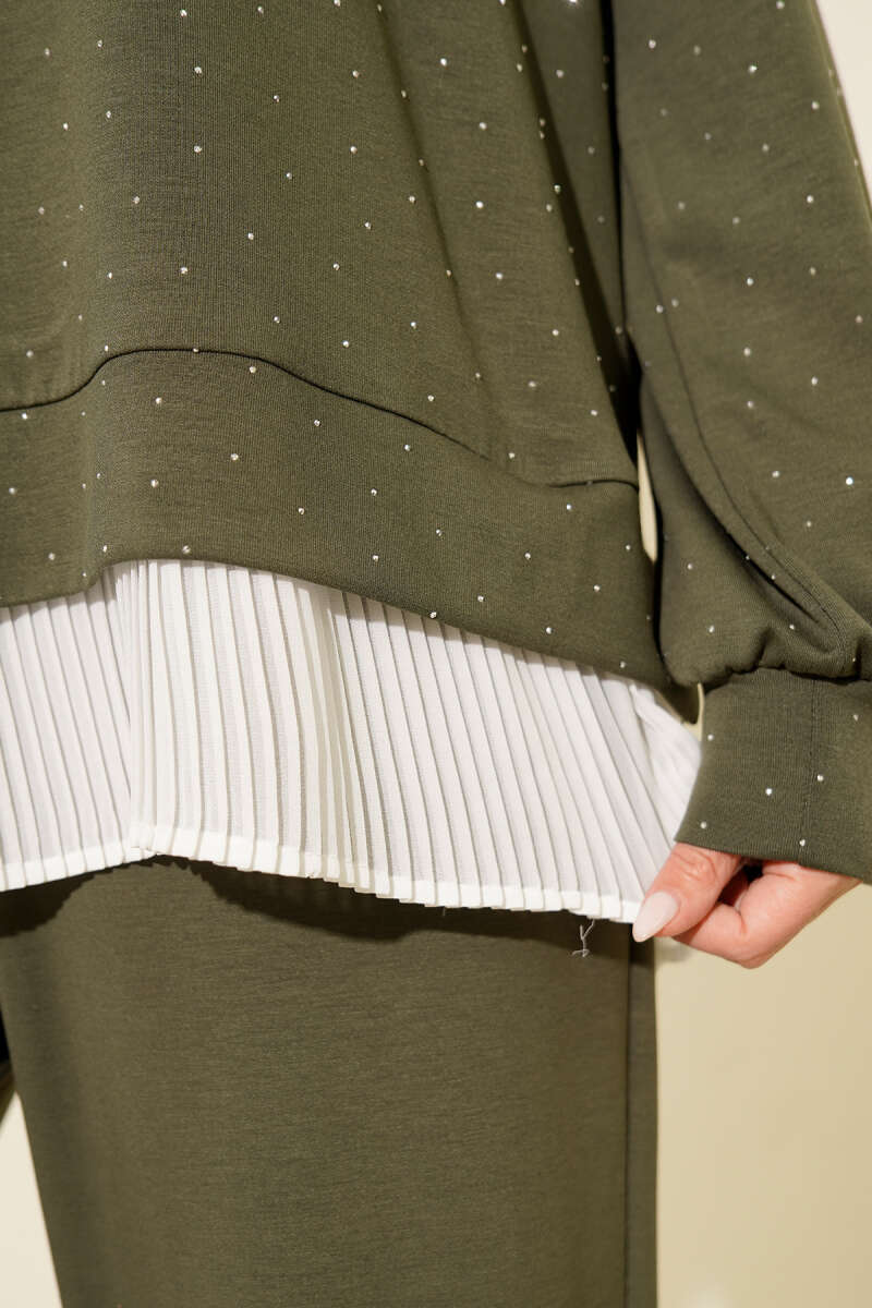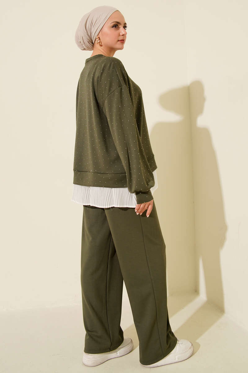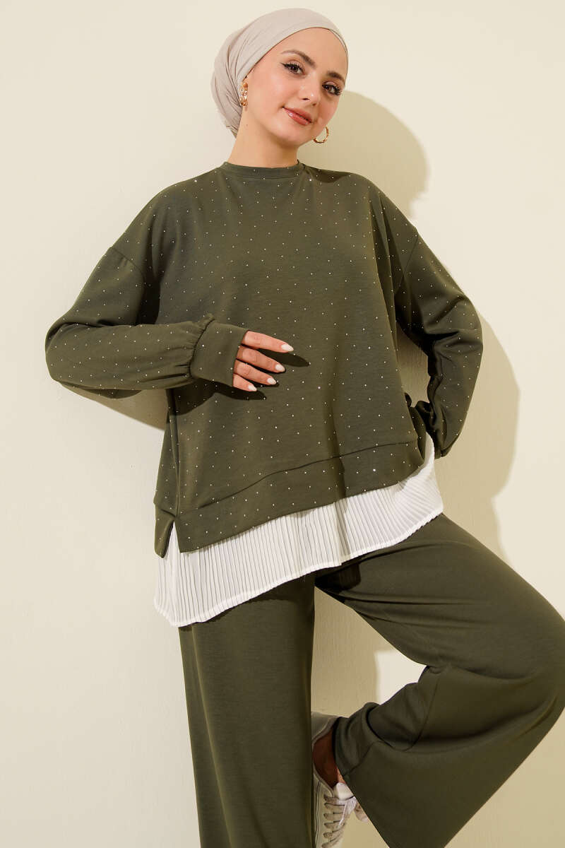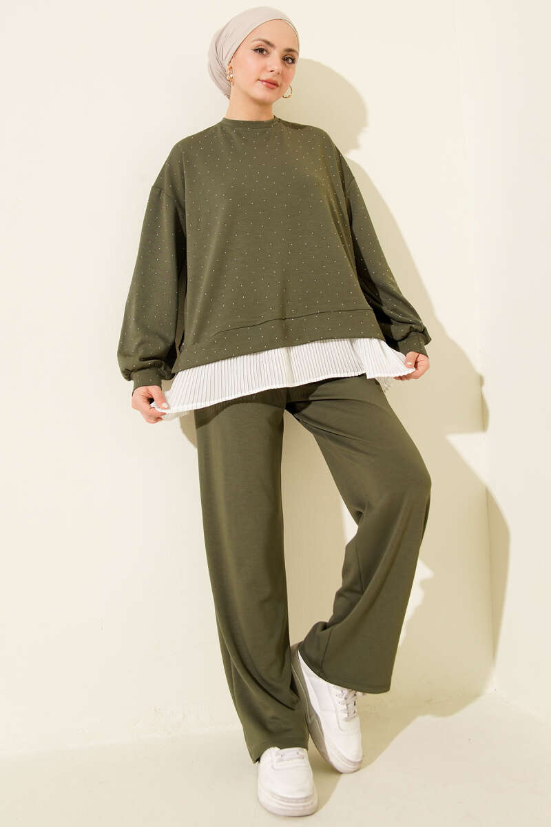 Mini Taşlı Fırfırlı Tunik İkili Takım Bej