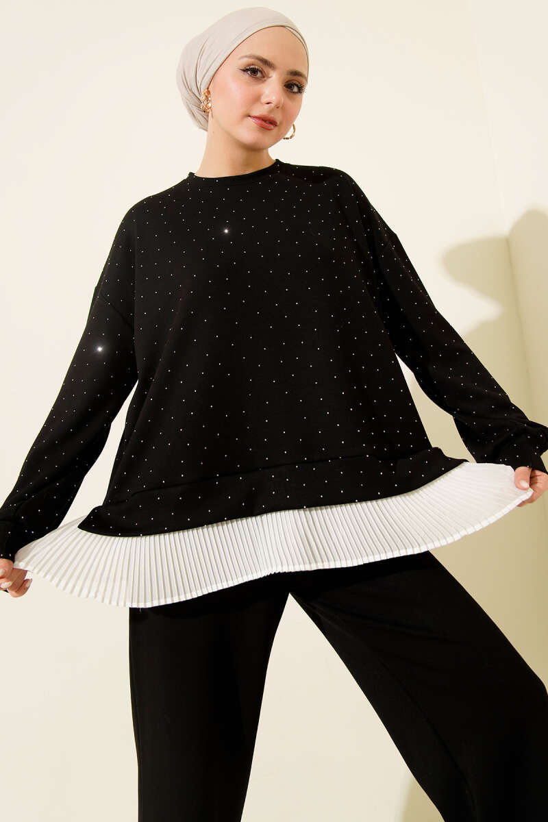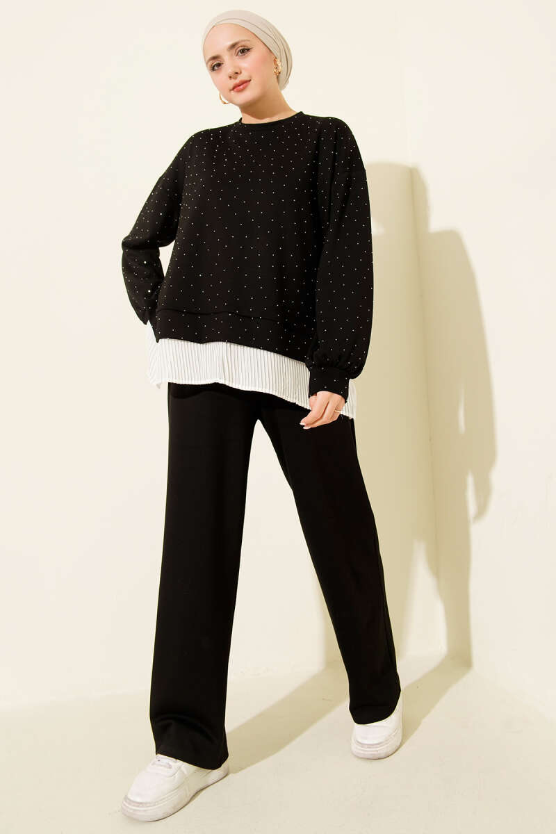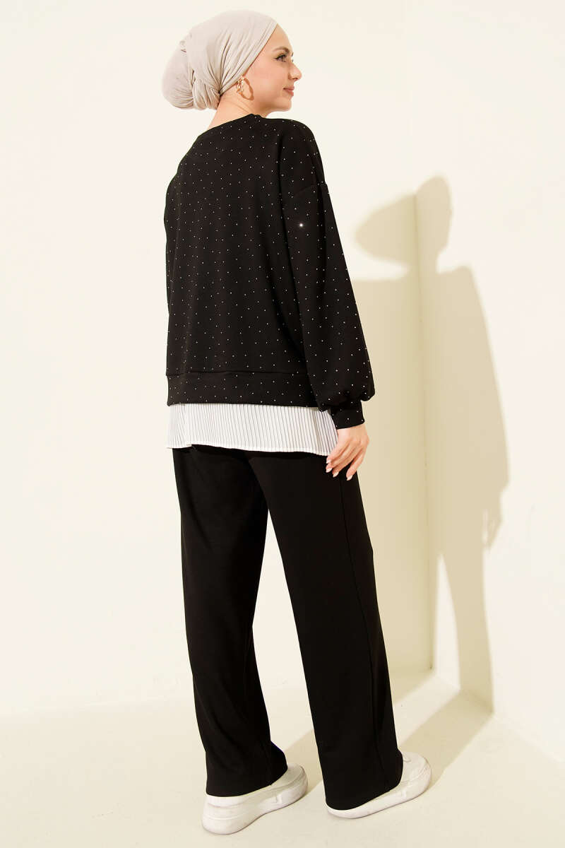 Çıtçıtlı Etekli Scuba İkili Takım Siyah
