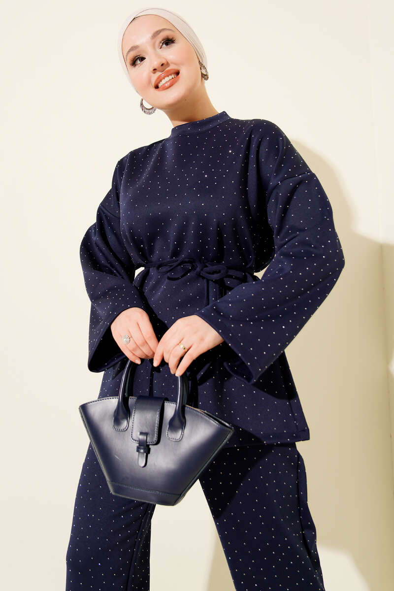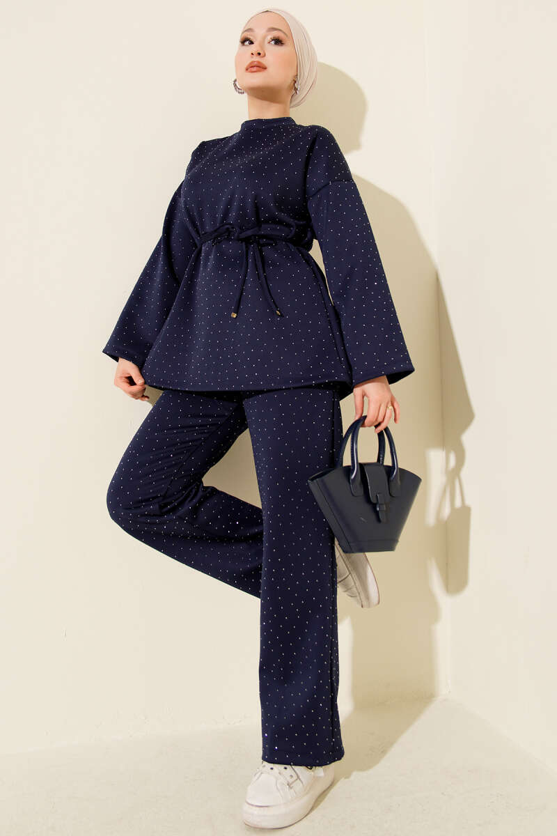 Taşlı Kanguru Cepli Loyşa İkili Takım Lacivert