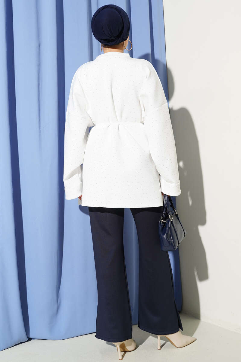 Atkılı Düğmeli Sakallı Ceket Ekru